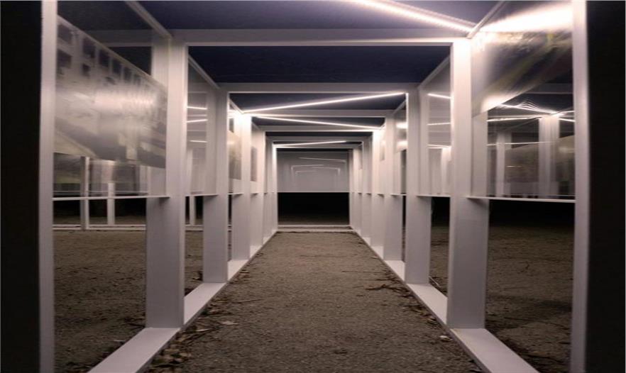 在晚上,隨著游客的移動(dòng),照明系統(tǒng)會(huì)相互交錯(cuò)地照射墻壁的圖片,強(qiáng)調(diào)出了時(shí)間的跨越性。