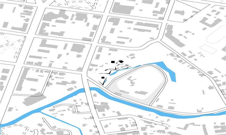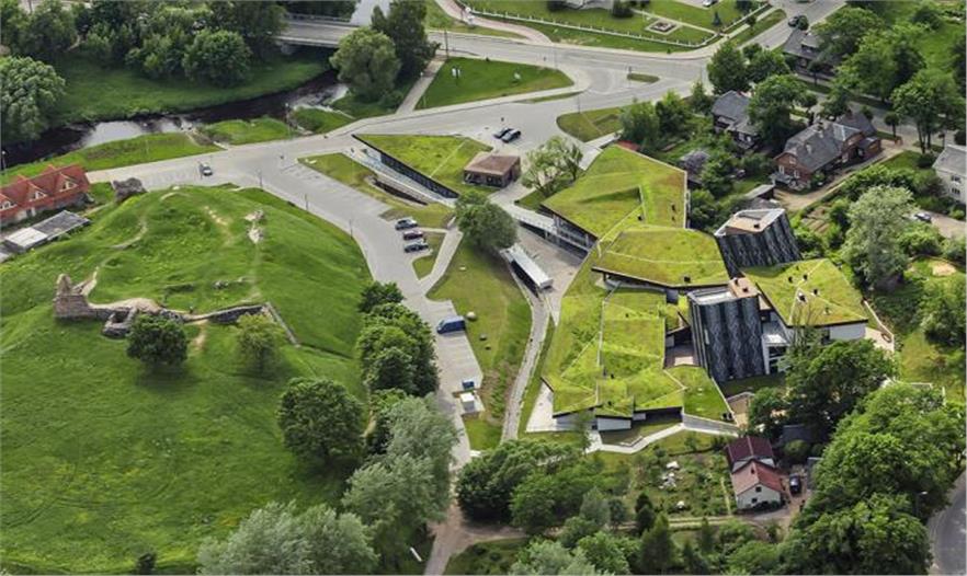 空間體量是圍繞著當(dāng)?shù)氐闹饕獡?jù)點(diǎn)——Rezekne城堡土丘來彎曲的;這個(gè)空間和周圍的地形相結(jié)合,并且具有朝著城堡土丘和教堂的開放視野。