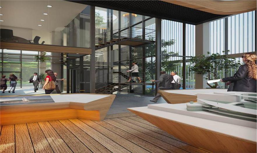 該事務(wù)所將銷售區(qū)規(guī)劃在一樓的前方,樣品公寓在頂樓。因?yàn)檫@個(gè)建筑對(duì)一個(gè)銷售區(qū)來(lái)說(shuō)太大,一樓后面的廣闊空間和第二層用于建筑場(chǎng)地辦公室,徹底和游客區(qū)域分開(kāi)。