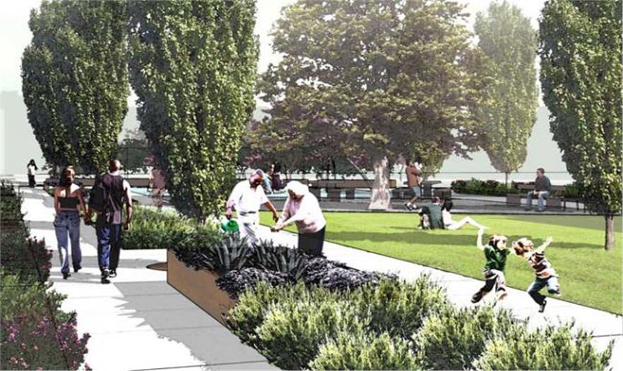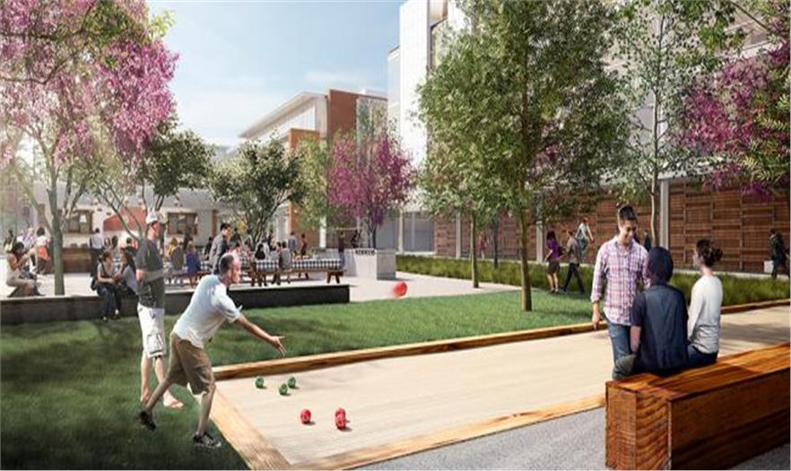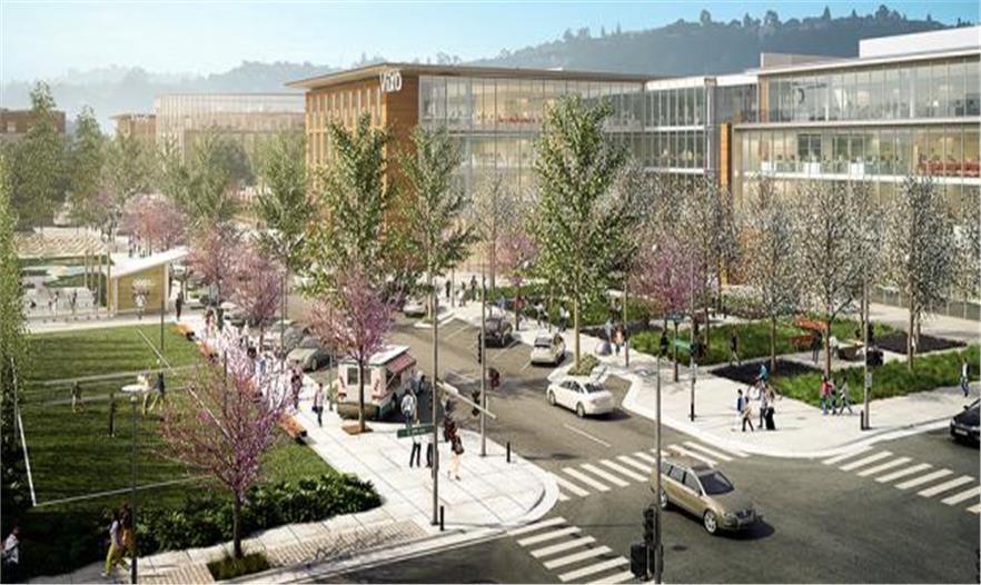 在這個交通導向式的街區(qū)里,CMG事務所正在建造一個令人難忘、綜合性的以步行為主導的街景道路網(wǎng)。在Bay Meadows里,這個街景把公共交通、居民和混合用途規(guī)劃融入到了這個獨特和可持續(xù)性發(fā)展的開放空間里。綠色設計方案通過植被材料的精心選擇、洪水管理基礎設施的使用以及盡責的區(qū)域規(guī)劃加入到開放空間設計當中。加上這些優(yōu)美的景色,這些開放空間會成為社區(qū)內(nèi)充滿生氣、以規(guī)劃為導向的區(qū)域。