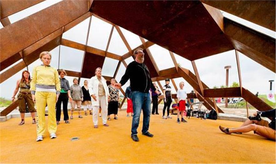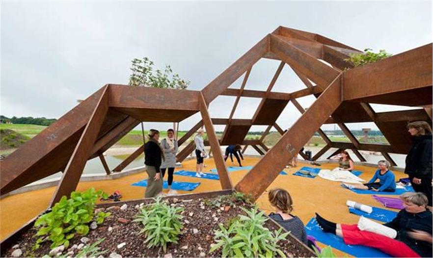 這個(gè)區(qū)域是冥想的最佳地方,是身心得到鍛煉的另一個(gè)區(qū)域。在公園這個(gè)安靜的地方,Cebra事務(wù)所的建造師設(shè)計(jì)了一個(gè)格子結(jié)構(gòu)的穹樓,作為攀爬植物的支撐物。所有的這些建筑由壕溝環(huán)繞著,營造出更加愜意的氛圍。通過使用不同類型的植物,這個(gè)遮蓋性的綠洲用來激發(fā)和刺激人們的所有感官:視覺、聽覺、味覺、嗅覺和觸覺。