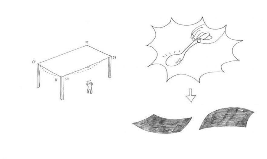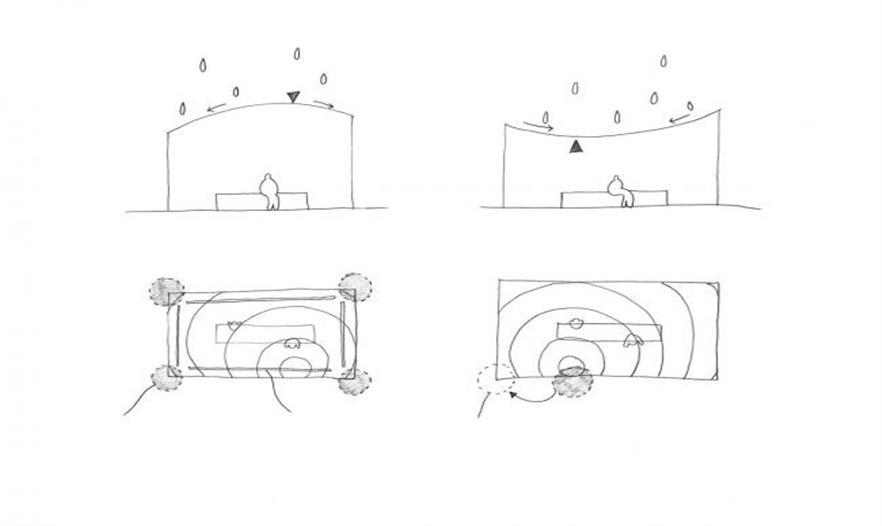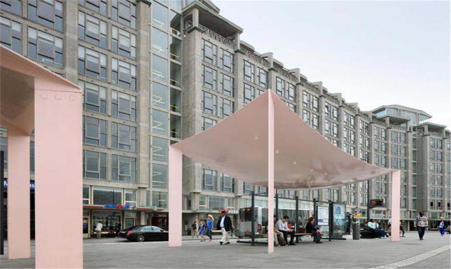 結(jié)果設(shè)計(jì)師建造了一系列顯著的熔鑄桌狀的結(jié)構(gòu),昵稱枕頭和吊床。每個(gè)桌子包括一個(gè)5 x 10米極薄的屋頂,放在平滑的鐵柱上,這個(gè)屋頂結(jié)構(gòu)是曲折的平滑表面,加以膚色調(diào)的拋光,讓人想起了漂浮的布和風(fēng)帆,但重量達(dá)5噸。
