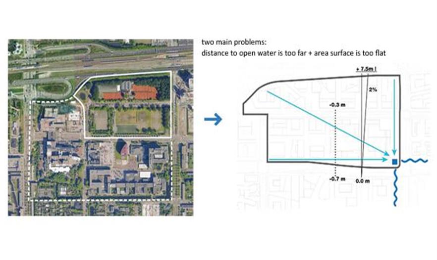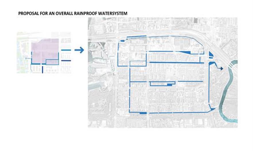 鹿特丹設(shè)定了該區(qū)域防水的目標(biāo),同時又增加了公共空間的質(zhì)量問題。事務(wù)所發(fā)現(xiàn)如果嚴(yán)格的遵守2個原則,就有可能解決暴雨的問題:設(shè)置能儲存自己區(qū)域雨水的儲水池,所以盡可能多地建造當(dāng)?shù)貎λ萘俊W鳛闇y試,它們將完全設(shè)在公共空間內(nèi)。