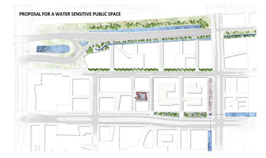 盡管有可行性研究為城市防雨提供了未來的發(fā)展前景,但事務(wù)所在一些方面提出了建議:它們的空間測量、準(zhǔn)確的建筑水平、儲水池的可能性數(shù)量、公共空間的緩沖力與地下基礎(chǔ)設(shè)施之間有效的相互作用、所提議的種植規(guī)劃的清潔潛力和它會為該區(qū)域所經(jīng)過的行人和未來的居住者提供的質(zhì)量問題。