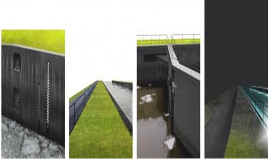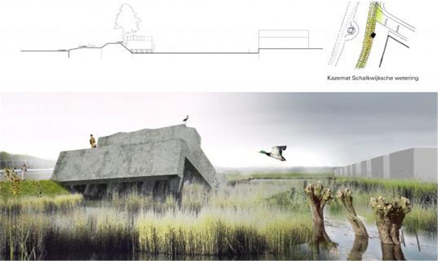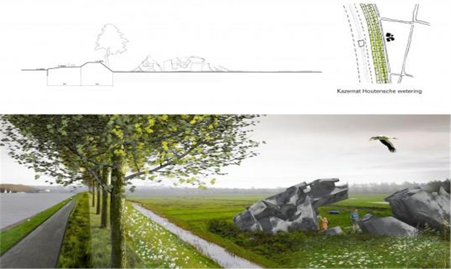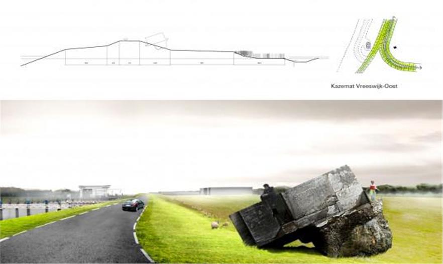 Bureau B+B事務(wù)所做了調(diào)查,在考慮其文化和歷史價(jià)值的情況下,如何保持這條防御線的完整性。這個(gè)項(xiàng)目最重要的方面是建造一個(gè)易讀的景觀,可以看到這個(gè)區(qū)域的改革和變化。這就是Lekcanal沿線的新荷蘭水線物件將被覆蓋和替代的原因。這就好像推倒它們,為新發(fā)展讓路一樣。但它們依然是堤壩沿線的“Objets Trouvés”。