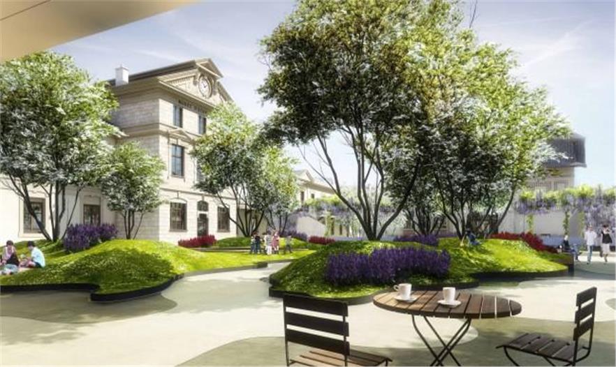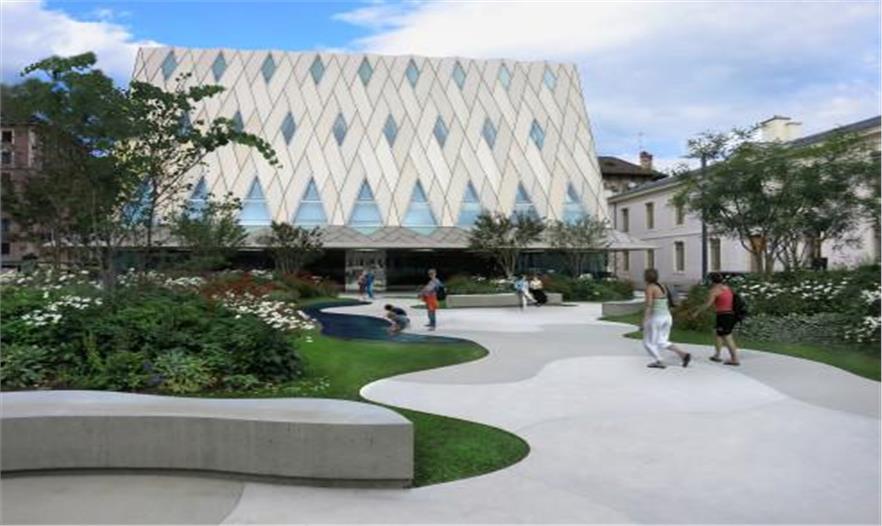 日內(nèi)瓦民族志博物館的散步道擴(kuò)展成為一個(gè)城市廣場,位于新博物館建筑群的入口建筑和學(xué)校建筑之間。該項(xiàng)目的設(shè)計(jì)方案需要把這個(gè)區(qū)域的日常生活和高品質(zhì)的展覽空間結(jié)合起來,就構(gòu)成了“花園地毯”這個(gè)中心設(shè)計(jì)理念。這個(gè)“地毯”理念是從中世紀(jì)傳統(tǒng)的“千朵花型”地毯發(fā)展而來,能令人想起通過精致裝飾構(gòu)成的理想化景觀。廣場上的香氣、聲音和顏色構(gòu)成了人們設(shè)想中美感,這是通過微型盆景以及花園地毯建立的多層結(jié)構(gòu)構(gòu)成。