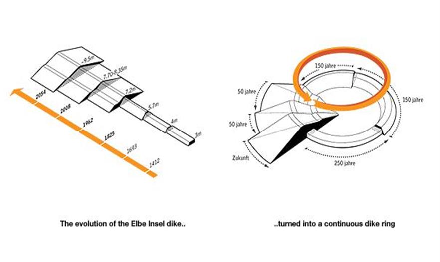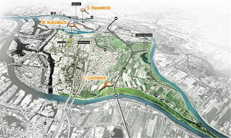 在“Stadtküste Hamburg”規(guī)劃內(nèi),IBA /Hafencity Hamburg邀請(qǐng)了一批藝術(shù)家、景觀設(shè)計(jì)師和城市規(guī)劃家來為易北島設(shè)計(jì)創(chuàng)新型方案。主要難題是想出的方案要能夠把人們與堤壩的關(guān)系拉近,展示出水平面上升的危機(jī)意識(shí)。