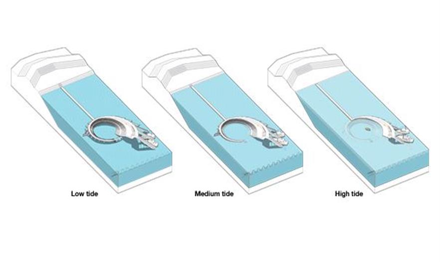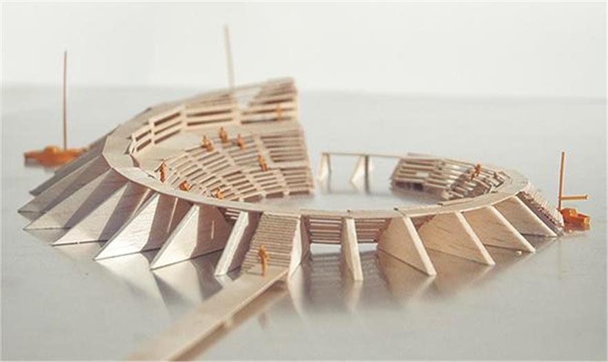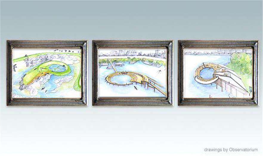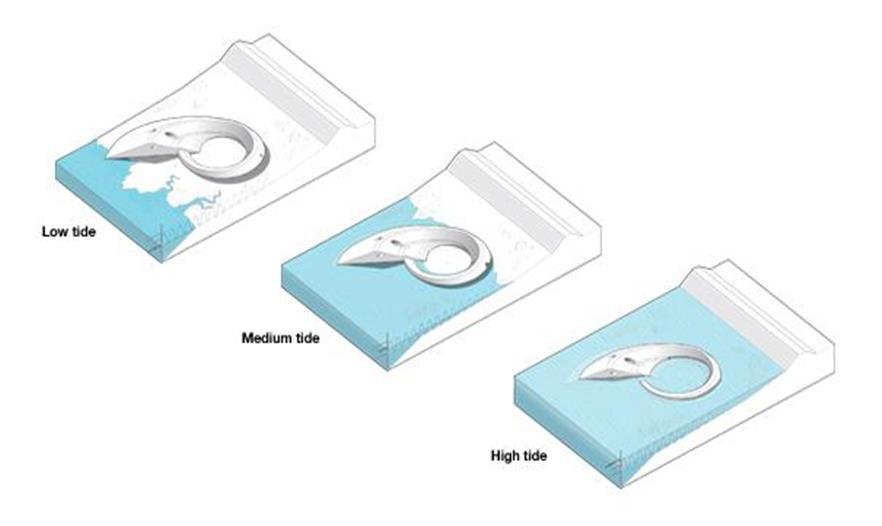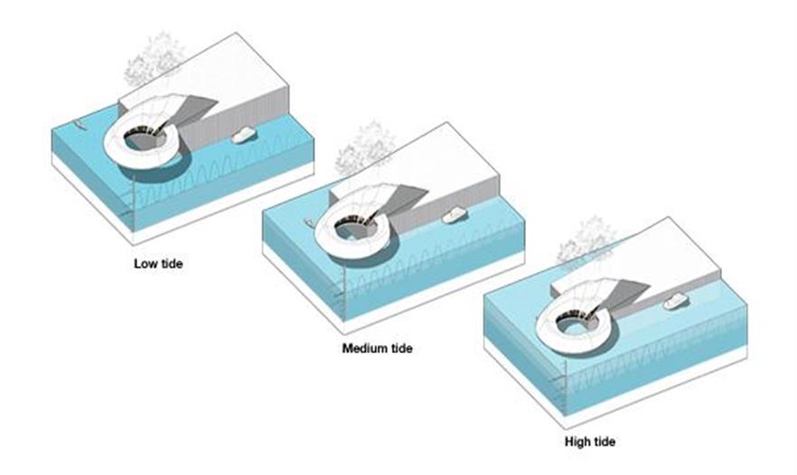 這個(gè)方案的出發(fā)點(diǎn)是Elbeinsel河堤的占用空間,它一直在發(fā)生顯著的變化。事務(wù)所建造一排連續(xù)的堤壩段來展現(xiàn)它500年來的發(fā)展變化,并把它們?nèi)诤显谝粋€(gè)封閉的堤壩圈里,象征著被保護(hù)的易北島。這個(gè)堤壩圈構(gòu)成了3個(gè)介入空間的依據(jù)。每一個(gè)空間都有不同的規(guī)模,而且這3個(gè)空間全建在不同的位置上,突出強(qiáng)調(diào)不同方式的潮汐體驗(yàn),并提供特定的社交規(guī)劃。