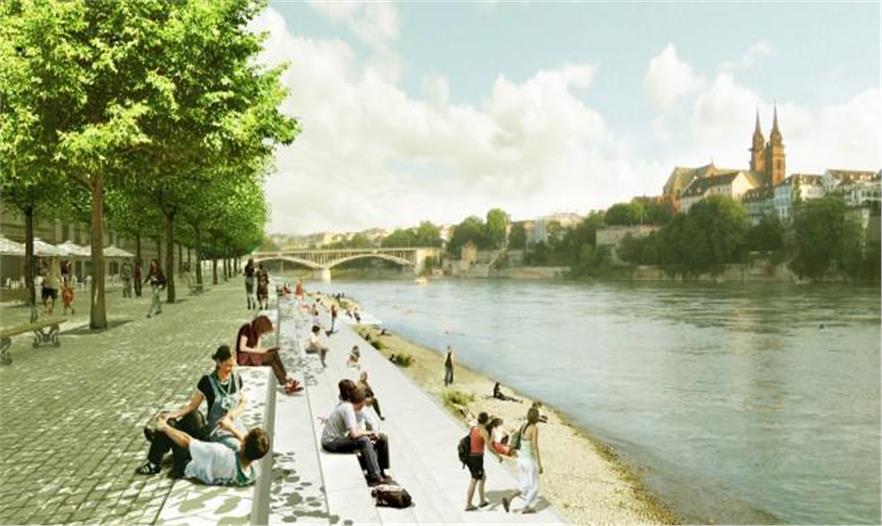 萊茵河畔散步道的設(shè)計方案是基于河流自然的地理特征建造的。巴塞爾處是經(jīng)過幾世紀(jì)的建造形成的,并在萊茵河的拐角處因河流的侵蝕作用在此處構(gòu)成了一個河岸。同時,這個動態(tài)變化打開了發(fā)展萊茵河的小巴塞爾河岸上礫石壩的區(qū)域。散步道沿線的一個連續(xù)性的卵石海岸線使人們有了接近水的可能性,達到了河流的最大的潛力與可接近性的目標(biāo)。