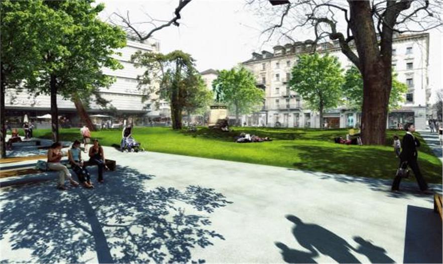 裴斯塔洛齊區(qū)位于繁忙的班霍夫大街蘇黎世的中心區(qū),展示出一個舒適的、過時的特點(diǎn)。然而人群和商品流動的更加迅速和平穩(wěn),甚至是地球村在班霍夫大街上也變得很小,地球村前面的小草坪面對著日常生活忙碌的節(jié)奏依然保持著平靜與高貴。這個區(qū)域被看作是街區(qū)發(fā)展的停頓點(diǎn),為行人服務(wù)。在這里人們能夠得以喘息、放松和休息。在蘇黎世這樣最繁忙的一個區(qū)域里,人們能坐下、觀察、交談或是閱讀,是裴斯塔洛齊區(qū)顯著的特征。這里就是這樣的情況,將來依然是這樣的情況。它的目標(biāo)是成為蘇黎世能夠放松休閑的區(qū)域。它突出強(qiáng)調(diào)了這個城市空間的人為狀態(tài)以及絕不在此區(qū)域上進(jìn)行工程建造和把它商業(yè)化的公開聲明。蘇黎世的這個區(qū)域、抽象的花園空間和超現(xiàn)實(shí)主義的現(xiàn)象就是行人的需求,想要在此停留休息一下,或是思考問題。草坪區(qū)域以蜿蜒曲折的形式穿梭在建筑之中,遵循著這個空間不會再建造建筑的原則。這個最小的地形指引參觀者的目光和活動,而且由于地形各種各樣的坡度,為行人提供了各種各樣的座位和可躺的位置。大片松散的樹木構(gòu)成了一個緊密的四邊形。晚上,周邊設(shè)有一連串不發(fā)光的LED燈,裴斯塔洛齊區(qū)隱于黑暗之中。裴斯塔洛齊紀(jì)念碑是唯一一處明亮的地方,它是由照明燈照亮著。