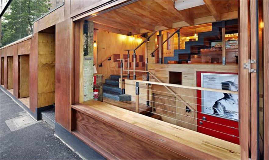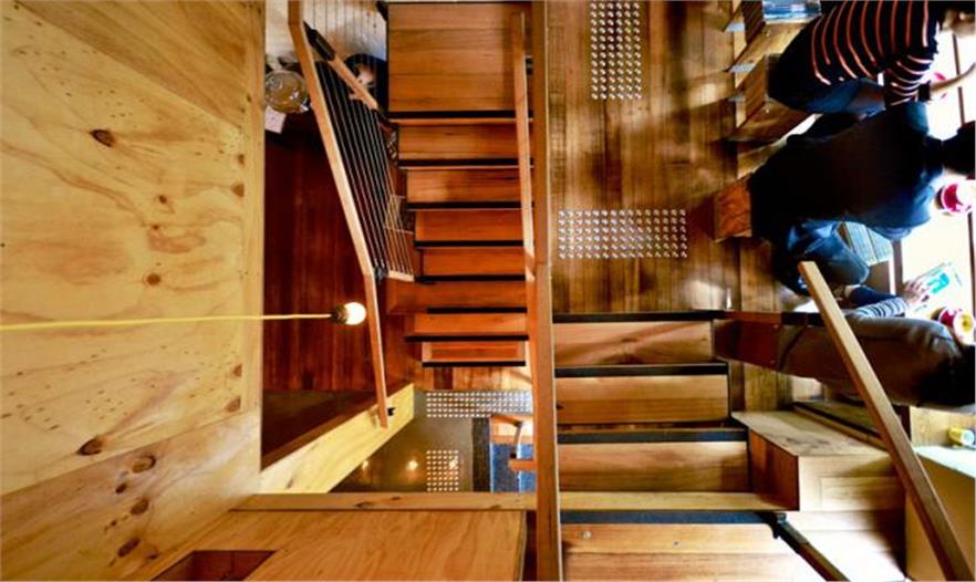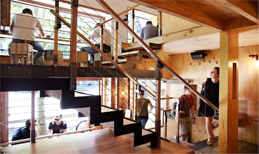 Flipboard咖啡店建在城市中一個被遺棄的區(qū)域里,是一個小型多層的凹槽建筑,為顧客提供有趣的空間享受咖啡和健康食品。這個咖啡店位于本尼特巷道爵士俱樂部下面的一個緊急入口、前往Brolly工作室的大道以及一個20年不用的商店窗口的交叉區(qū)。