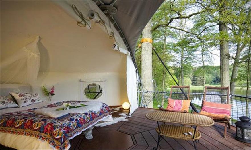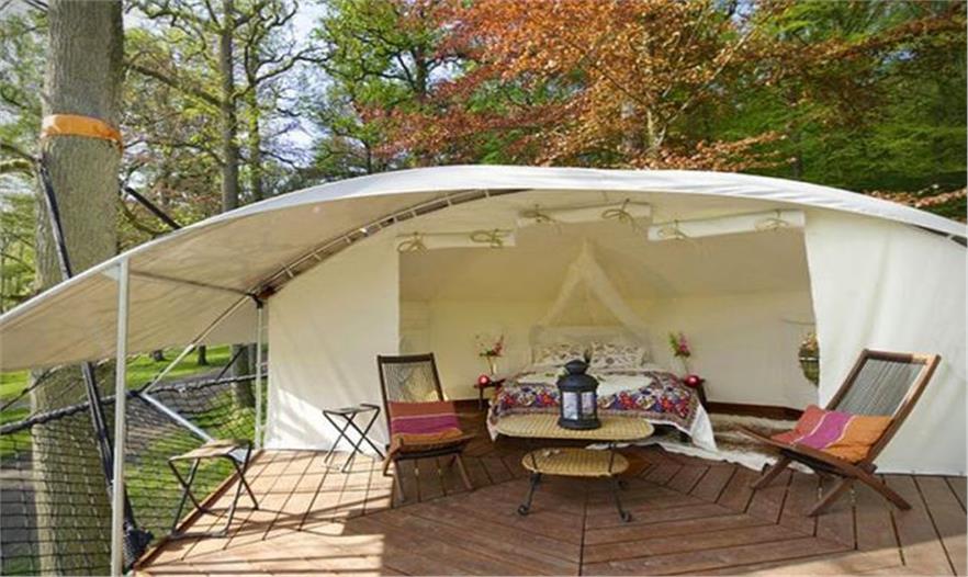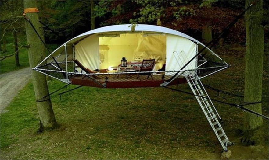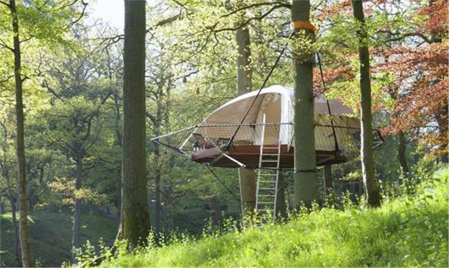 漂浮的樹屋——Dom'Up能讓人們的戶外探險(xiǎn)活動(dòng)達(dá)到一個(gè)新高度。荷蘭樹藝學(xué)家Bruno de Grunne和建造師Nicolas d’Ursel設(shè)計(jì)建造了這個(gè)具有創(chuàng)意的樹屋,其特色是抗紫外線屋頂,由耐用的熱焊接柏油帆布構(gòu)成。這個(gè)輕型的172平方英尺的小屋懸掛在2棵樹之間,因?yàn)殄冧\鋼和天然的(可拆裝的)木質(zhì)地板擴(kuò)充了這個(gè)支撐。