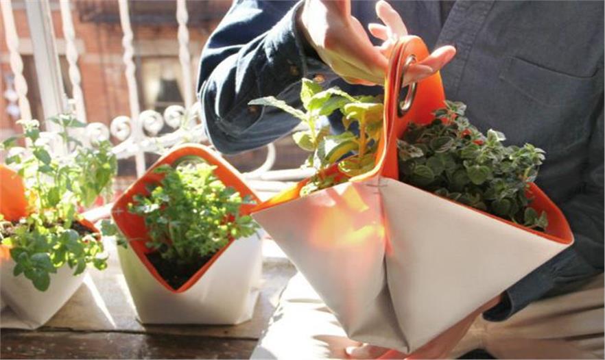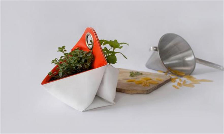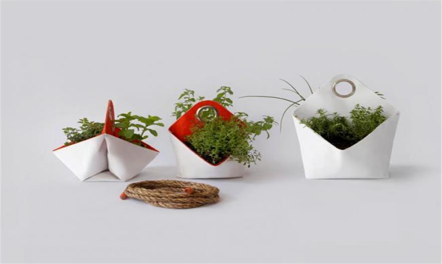 Nomad是個(gè)輕便的植物花盆,由纖維布折疊而成。這個(gè)設(shè)計(jì)適用于有限的植被空間的各種環(huán)境。它能用繩子懸掛、放置在咖啡桌上、可以移放到窗口獲得更多的陽(yáng)光或者使用者選擇種在花盆的一邊,懸掛在墻壁上,建造一個(gè)垂直花園等等。這樣開(kāi)放的設(shè)計(jì)給使用者無(wú)限的想象空間。