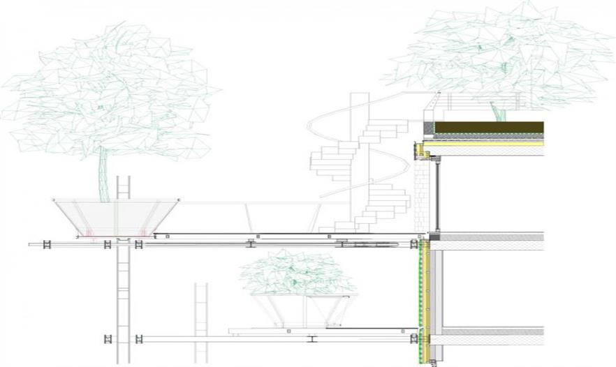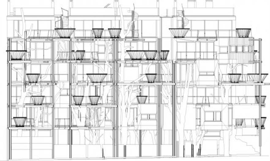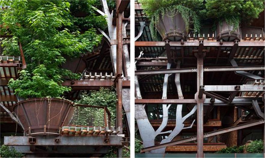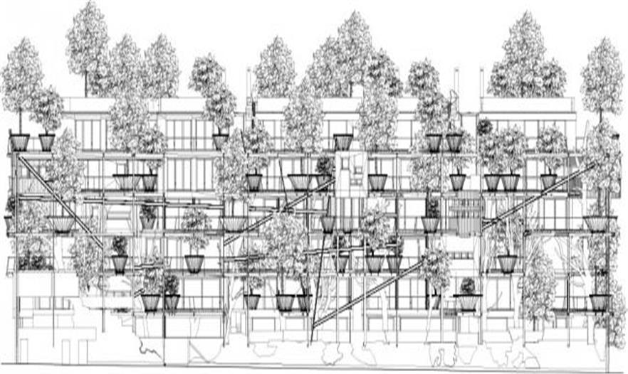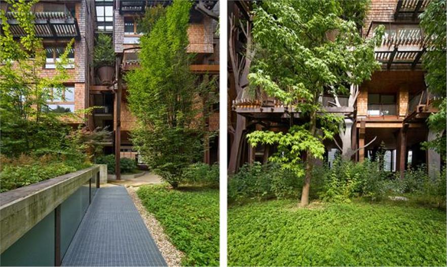 種植槽里植有2.5米到8米不同高度的樹(shù)或灌木。住宅種植了落葉樹(shù)種,以便冬季也能獲得光照。樹(shù)種的選擇根據(jù)不同的需求而各有不同,但都確保了樹(shù)葉、顏色和花朵的多樣性。