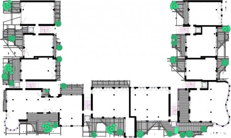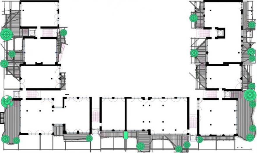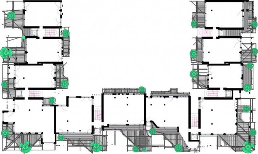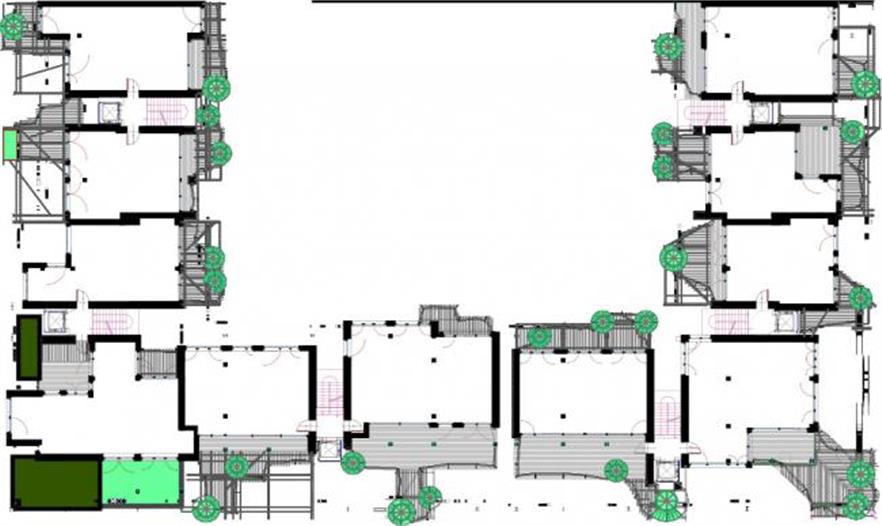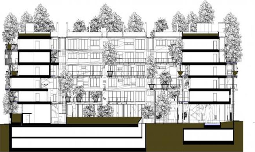 這棟建筑物里有63個(gè)居住單元。這些居住單元各不相同,均有不規(guī)則形狀的圍繞著樹(shù)的陽(yáng)臺(tái)。最后一層覆蓋有私人綠植屋頂。