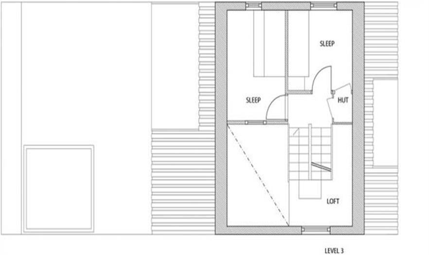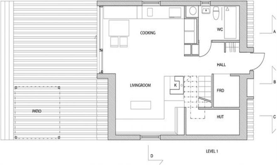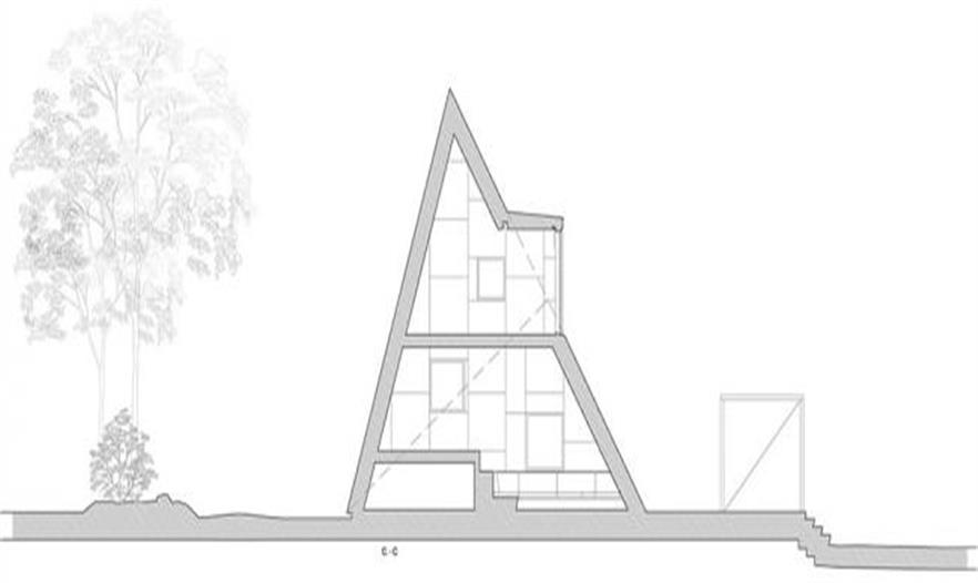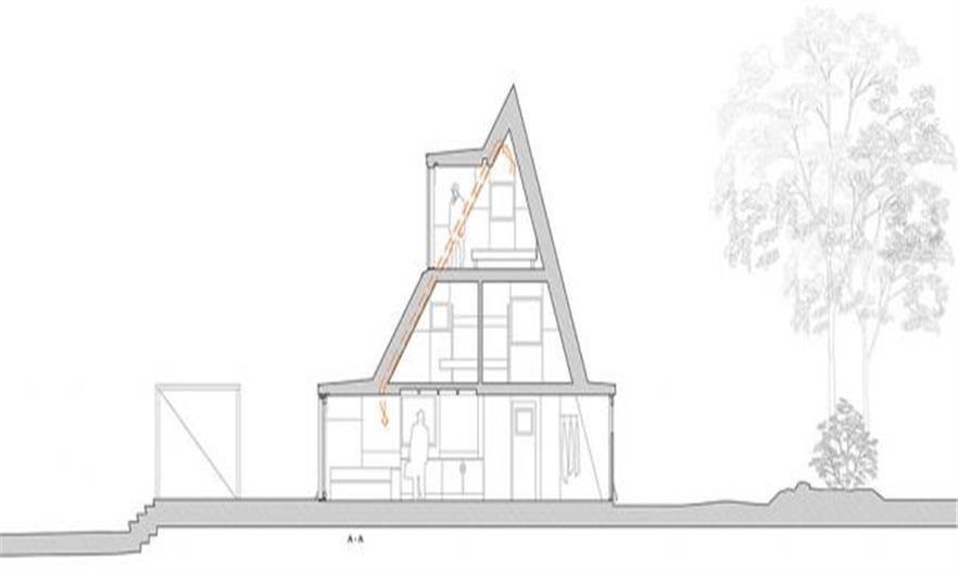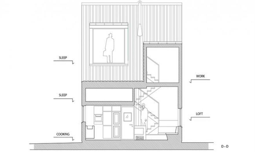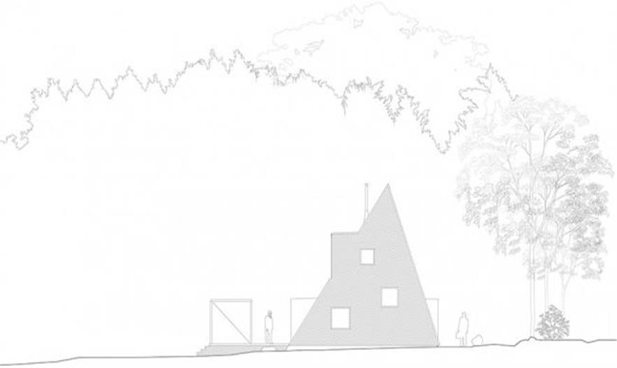 項目的要求明確且具有挑戰(zhàn)性:可以在室內(nèi)外做飯,一個安靜的閱讀室和星空之下的一間臥室。同時還要有一個凸窗,并且屋頂從住宅正面看是梯田狀。住宅總表面積大約85平方米,室內(nèi)共有8間房,在8.5米高的天花板下包括兩間小屋和三層陽臺。