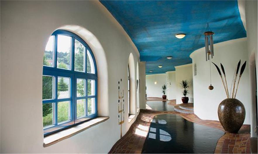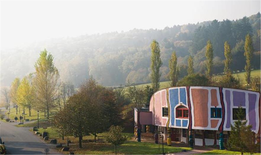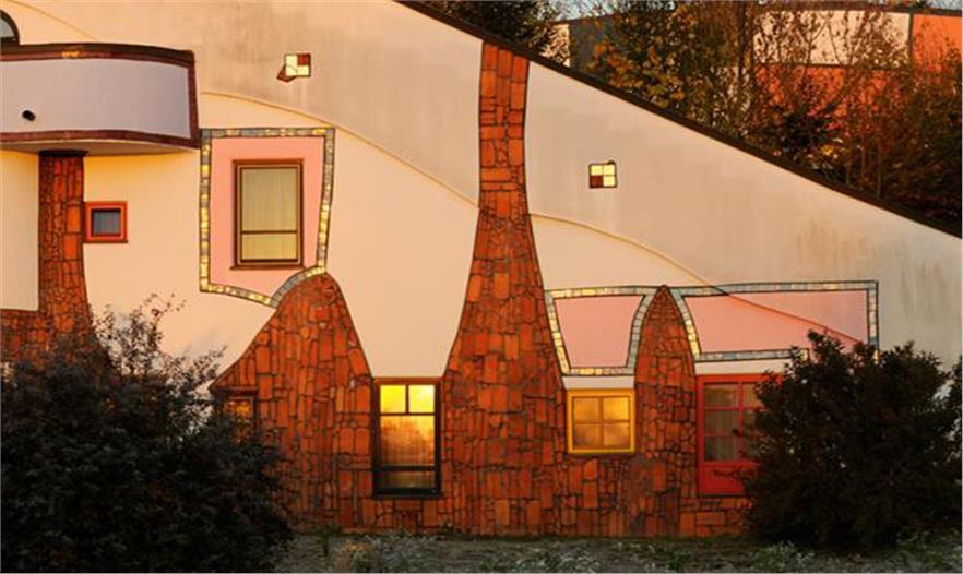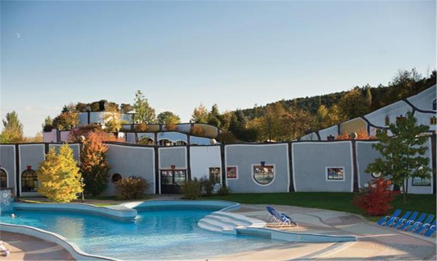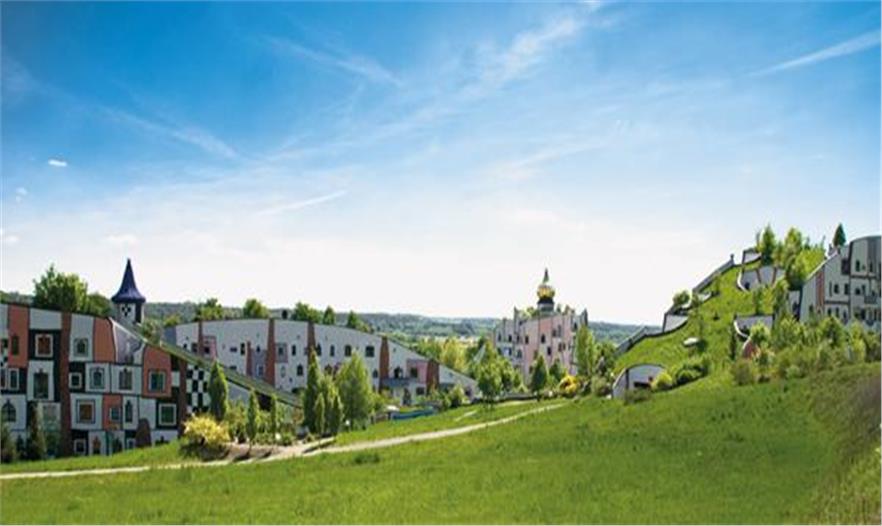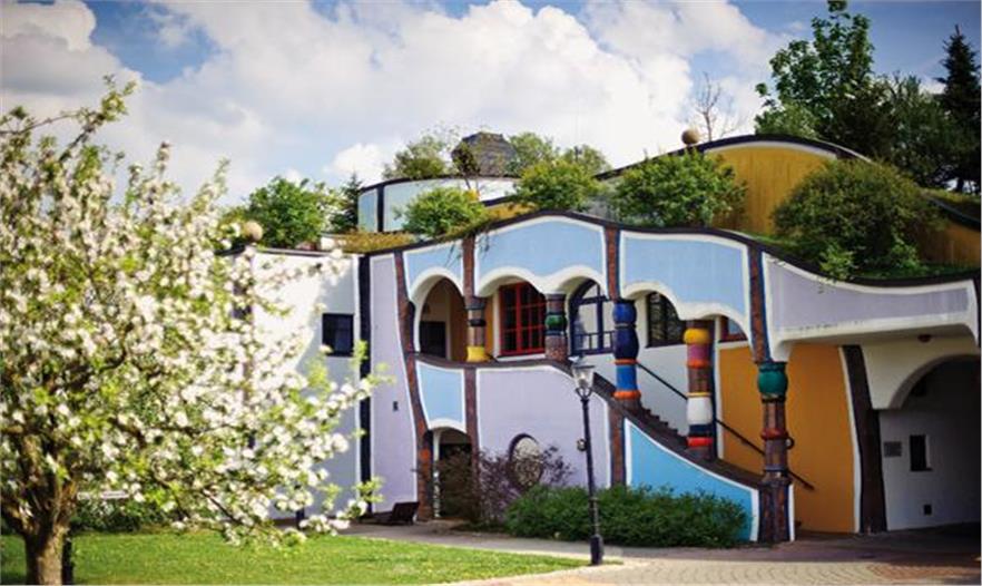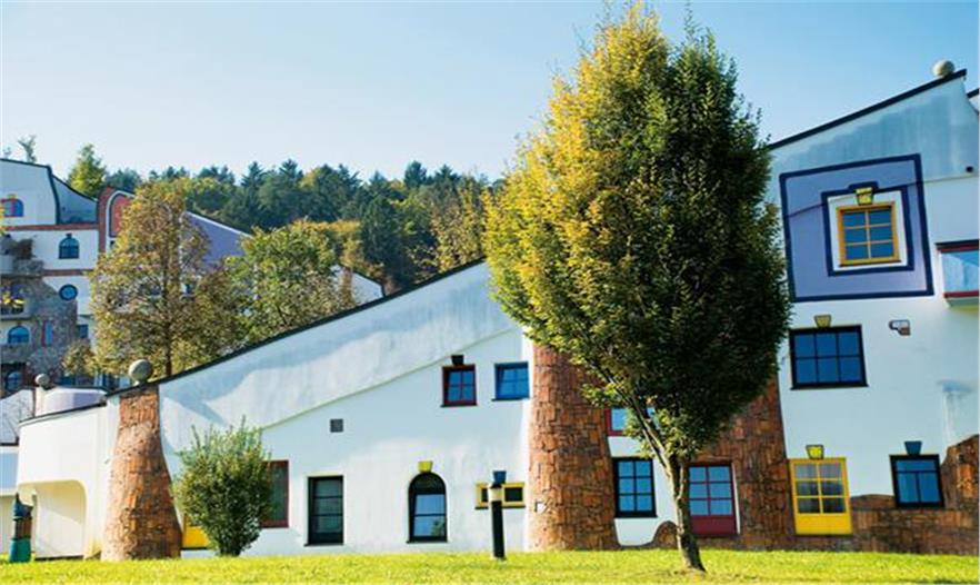 奧地利建筑師friedensreich hundertwasser所設計的百水山莊溫泉酒店 (the rogner bad blumau)位于奧地利施第里亞地熱區(qū)的中央,它不僅是一個豪華溫泉酒店,也是一個完整的藝術作品。地熱公園于1997年開始運營,它擁有豐富多彩的拼貼外墻和綠化屋頂?shù)脑O計,目光所及沒有一條直線。公園安排得像一個有不同地區(qū)的城市,中心是室內(nèi)環(huán)形溫泉浴場,并擁有分散在開闊的風景中的住宿、游泳、沐浴和餐廳區(qū)的各種配套服務設施。