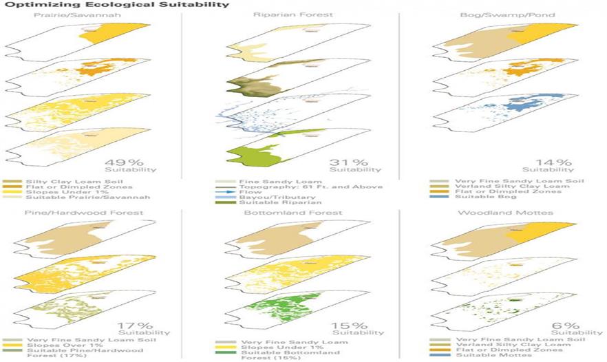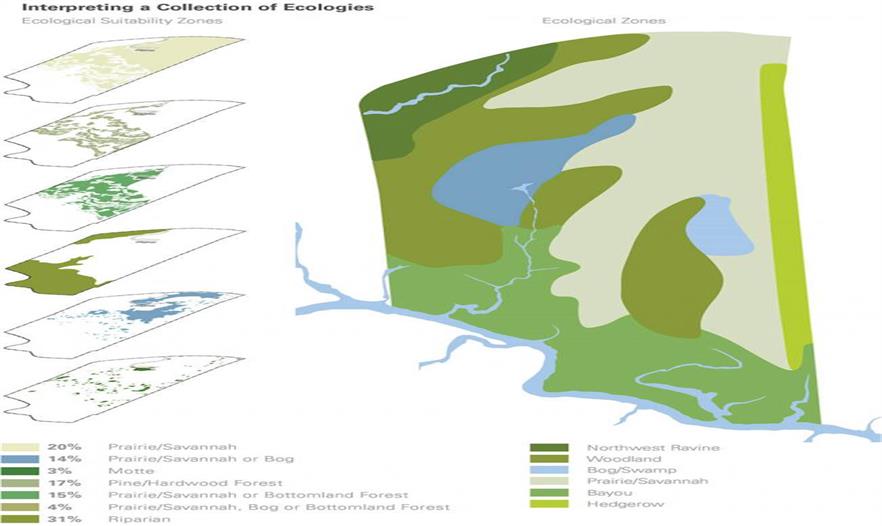 這種由于最近的氣候變化所顯現(xiàn)的生態(tài)格局,提出了一種對(duì)應(yīng)變化頻繁的生態(tài)系統(tǒng)的新景觀拼接。環(huán)境疊加的過(guò)程幫助現(xiàn)場(chǎng)不同的景觀類型選擇最佳條件。