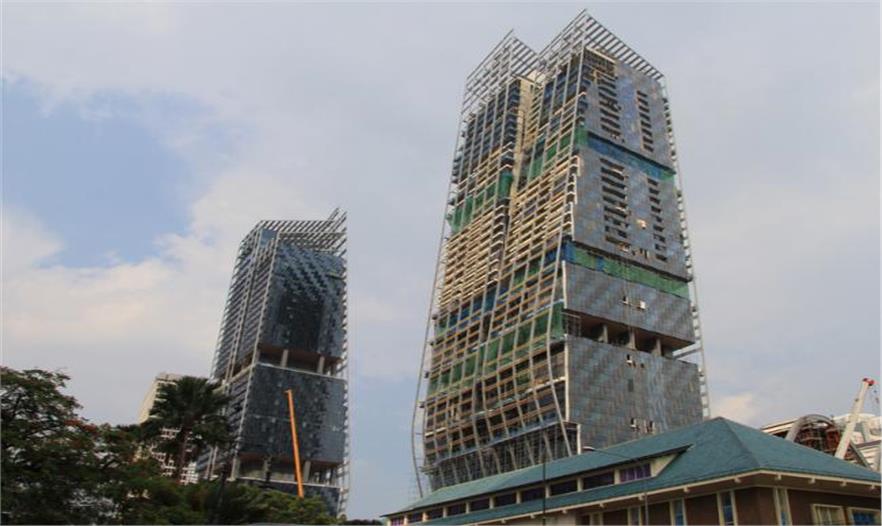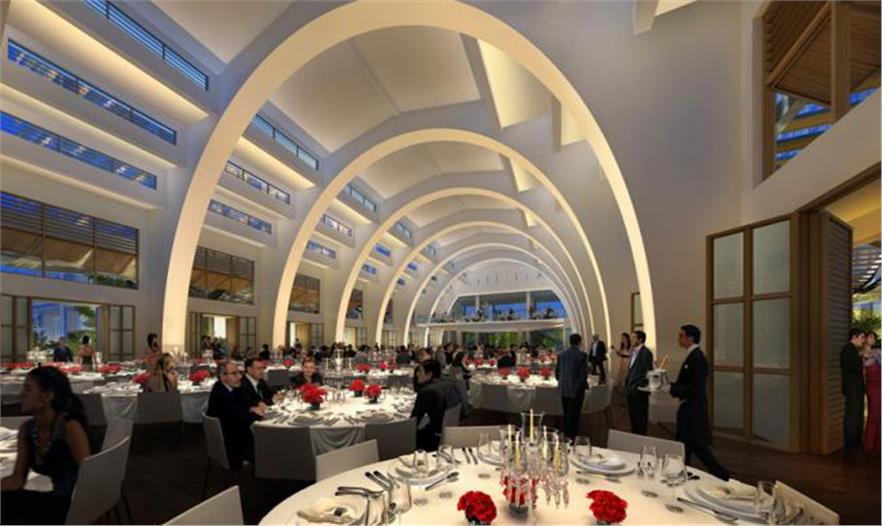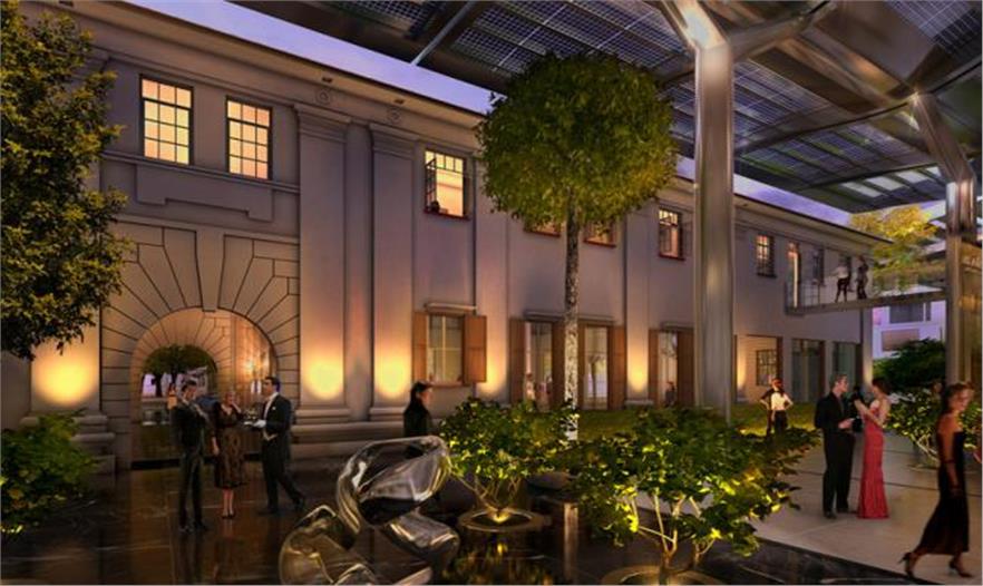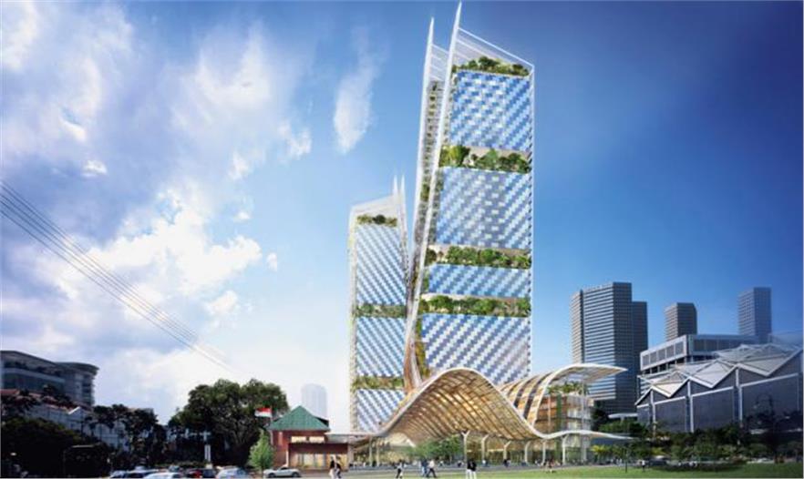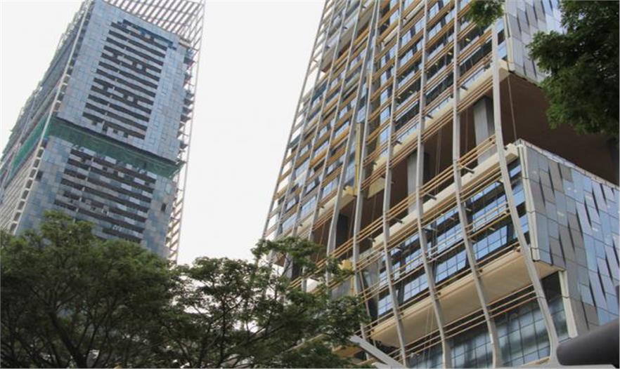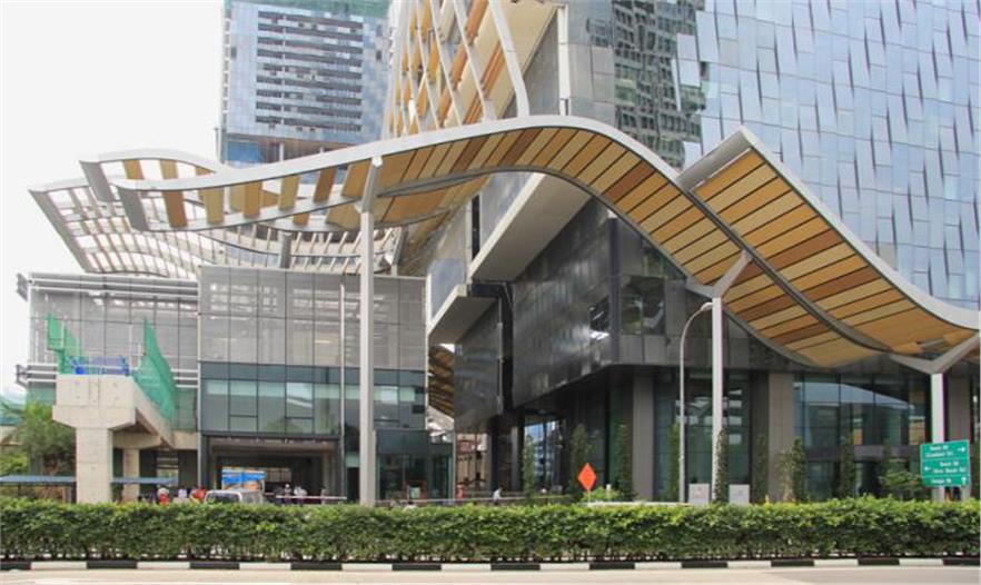 塔樓高達182米 兩棟182米高塔樓的曲面形式是下方天蓬起伏形式的延續(xù)。立面形成一定的角度可以引導盛行風,直接的空氣流動可以為底層空間帶來涼爽。南側塔樓被分成酒店和公寓兩部分,北側塔樓則是辦公空間。兩棟建筑都設計有植物濃密的空中花園,能夠獲得中央商務區(qū)連貫的視野。周邊建筑的處理敏感地響應街道對面著名的萊佛士酒店的規(guī)模尺度,相鄰的前軍事建筑得到了精心修復,并且點綴有保留的大樹。
