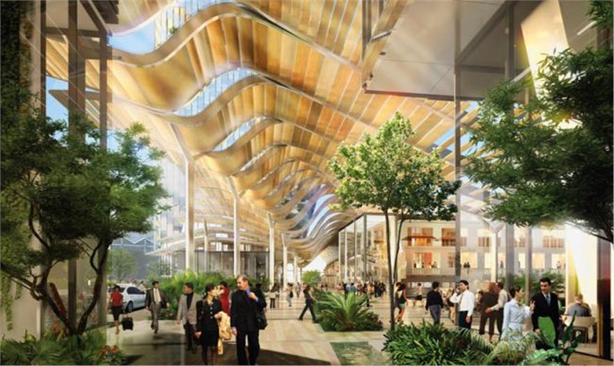 大的天蓬為下方光線充足的空間提供庇護 地面空間全部都是步行空間,只有個別進入地下車庫的機動車通道且全部放置在場地邊緣。公共交通直接與新加坡大規(guī)模快速交通系統(tǒng)網絡連接在一起。大型環(huán)保天蓬覆蓋了34950平方米的場地,化解了嚴酷熱帶天氣的影響,遮擋了雨水和陽光直射,同時又風從其中吹過。該項目正在進行中預計2016年完工。