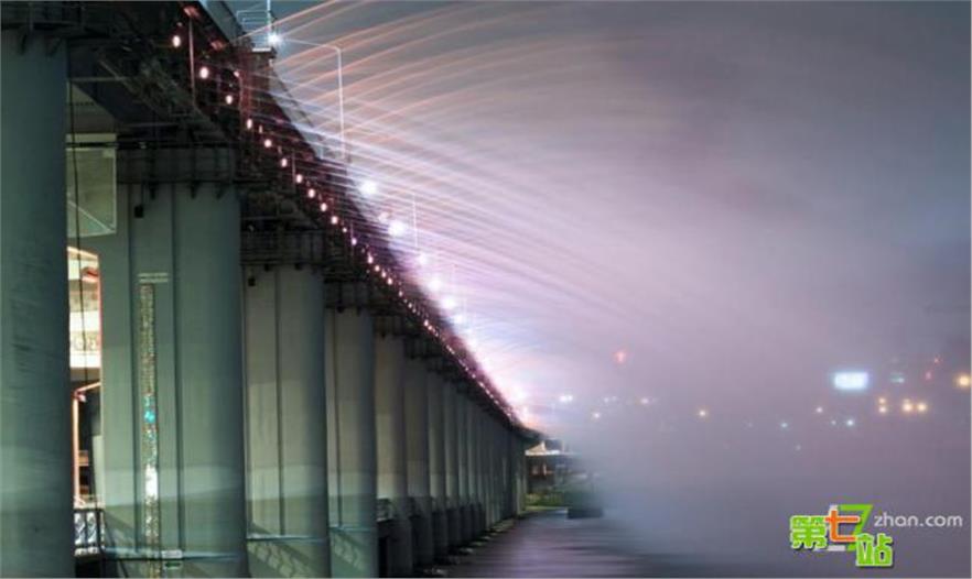 首爾橋,在橋上看到彩虹裝飾噴泉,沿整個長度的橋。