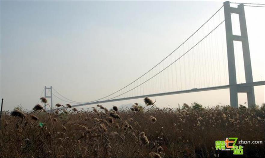 秦月橋、香港。整個橋約1400米。秦月橋是香港最長的鐵路懸索橋在世界。
