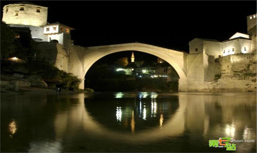 老橋波斯尼亞和黑塞哥維那。老橋建于16世紀(jì)聯(lián)合兩岸邊的莫斯塔爾市。1993年在波斯尼亞戰(zhàn)爭期間克羅地亞橋被摧毀了,但仔細(xì)修復(fù)和重新開放,,2004年再次俯瞰河流涅雷特瓦縣政府。
