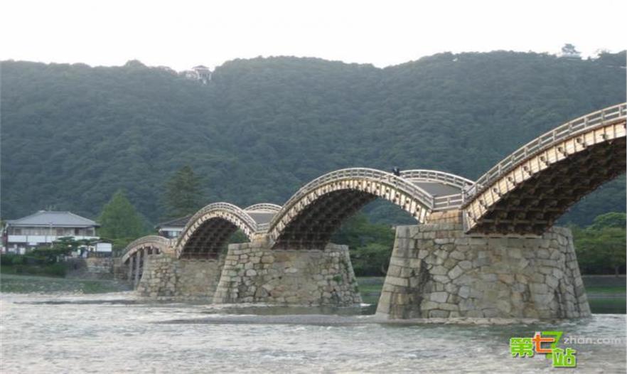 日本橋金塔納。在構(gòu)建這個木拱橋1673鋪平過河日本。時被稱為藝站和日本政府國家遺產(chǎn)。