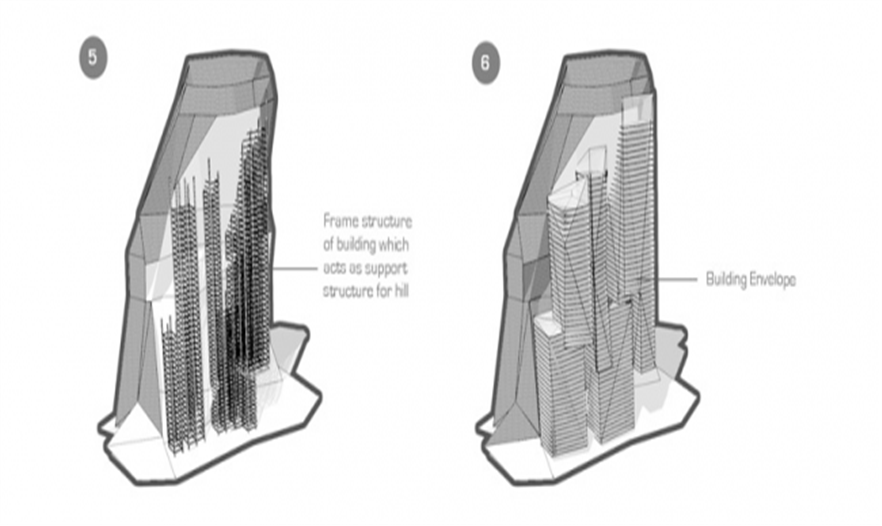 ↑找到想要改造的山體并以支撐結(jié)構(gòu)對(duì)其進(jìn)行加固