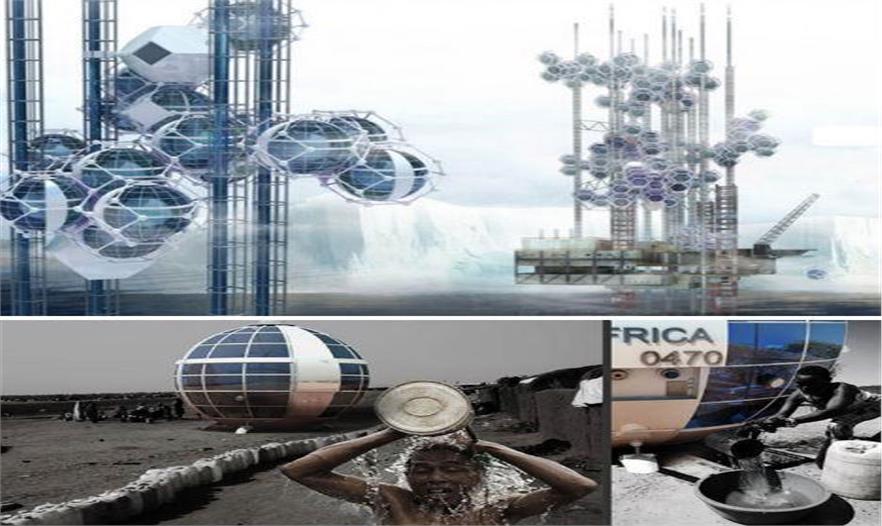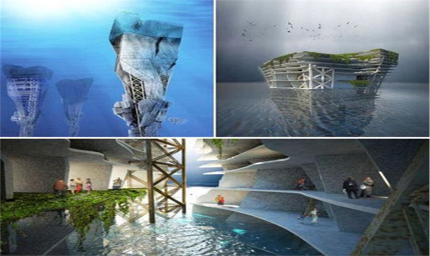 數(shù)百座廢棄的海面石油鉆塔將會變成可居住的摩天大樓,并且可以淡化海水,給數(shù)百萬的居民提供淡水資源,這些現(xiàn)存的鉆桿將被用來抽取海水。水對塔的反向運動所產(chǎn)生的能量足夠這些設(shè)備正常運轉(zhuǎn)。
