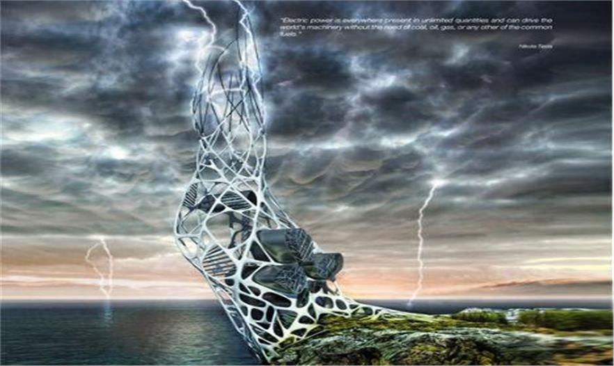 只要我們能夠找到一種耗能小的方法制造氫燃料,那么它將成一種非常好的可再生能源。利用閃電直接電解可以解決這一問題。這座怪異建筑設(shè)計理念的目的在于收集閃電中的電能,并且利用這些電能電解水成為氧氣和氫氣。這座建筑的骨骼結(jié)構(gòu)用超高強度的石墨烯材料建成,是鋼的強度的200倍,因此它能承受這樣強度的應(yīng)力。根據(jù)設(shè)計者的構(gòu)想,這些建筑應(yīng)建在熱帶地區(qū),這里的雷雨天氣比較多。