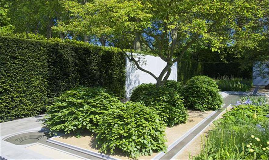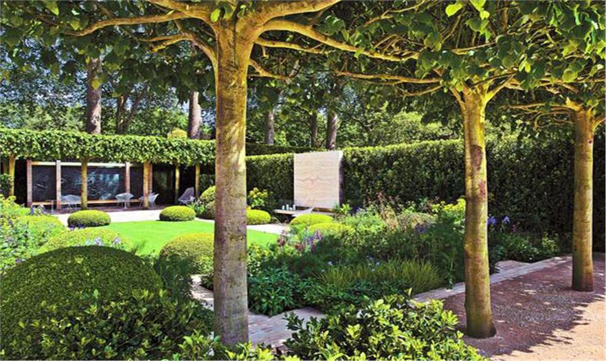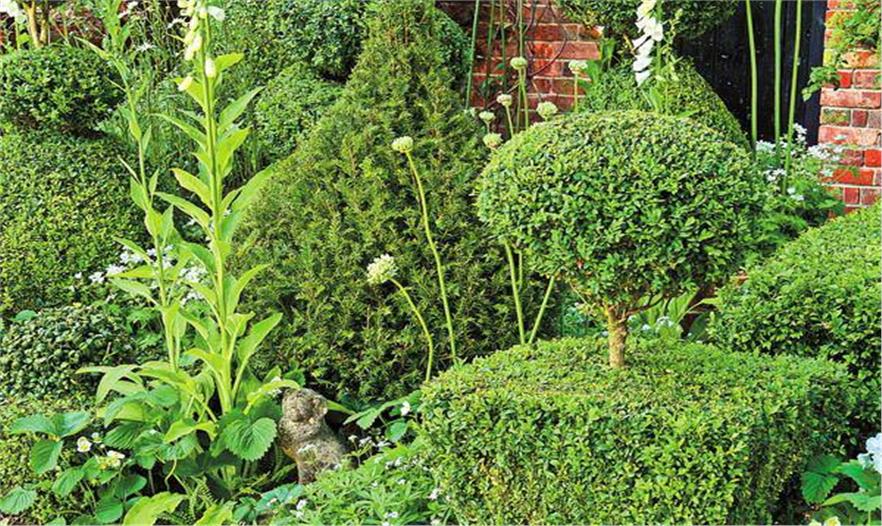 修剪藝術(shù)是切爾西植物園的一部分,修剪后的樹木造型在林下栽植的襯托下,設(shè)計(jì)成為精致的雕塑造型,直線和曲線形成鮮明對(duì)比。白色的林下栽植是為了突顯綠色雕塑,以及黑色的輔助因素,以避免損傷植物。