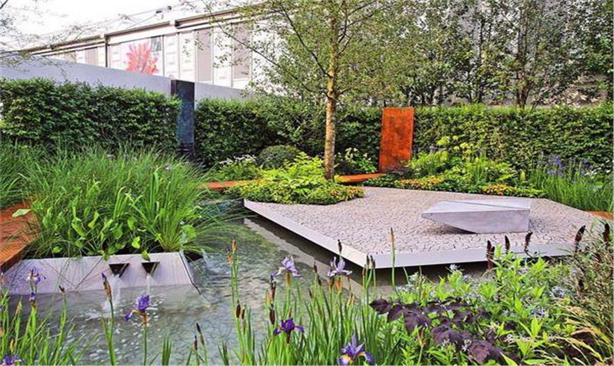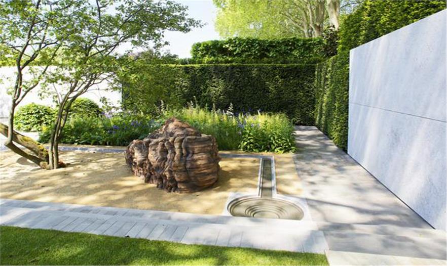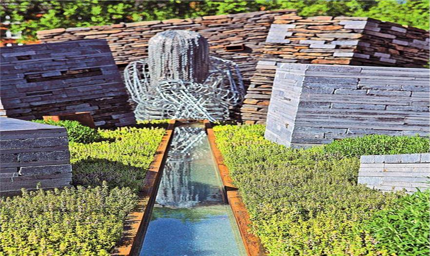 這個(gè)現(xiàn)代花園詮釋了全球的水問題,同時(shí)展示了家庭花園和商業(yè)景觀的實(shí)用解決途徑。模擬自然流水,水從不同梯度,以不同的速度流經(jīng)花園。設(shè)計(jì)師從全球極端天氣造成的干旱狀況獲得靈感,地面鋪設(shè)了自然形成的幾何圖片。