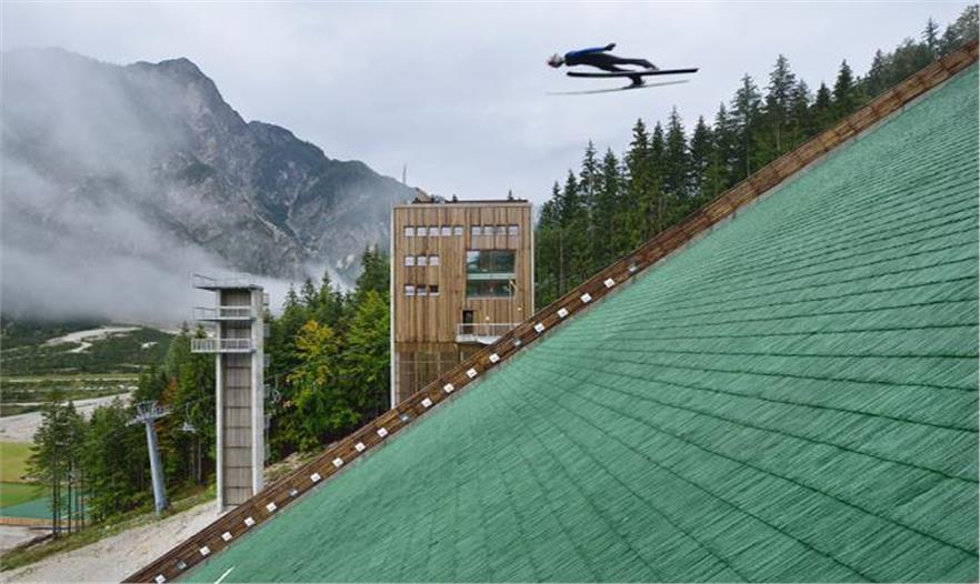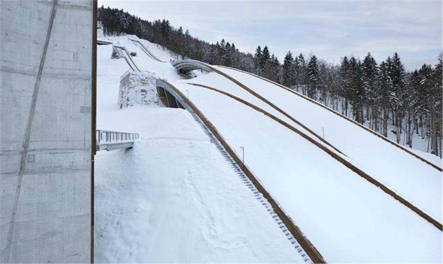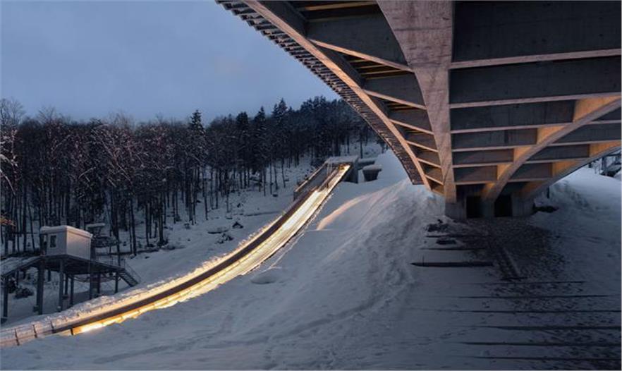 跳臺滑雪通常被設(shè)計去促進(jìn)有大量基礎(chǔ)設(shè)施和后勤工作的大型競賽的發(fā)展。當(dāng)超過1.5萬人口來到這個脆弱的山谷時,因為它的運行功能發(fā)揮的關(guān)鍵作用使這個建筑的形式有了存在感。但是在日常生活中,很少有年輕的跳臺滑雪者來到這里訓(xùn)練,那時就展現(xiàn)出了其簡單化的設(shè)計、對該區(qū)域的尊重設(shè)計以及該區(qū)域的活力。