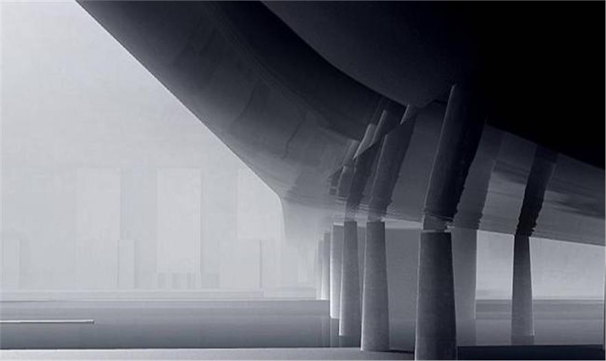 這座橋在上面和下面的設(shè)計(jì)形式和材料使用上有極大的不同。橋下的表面是黑色的噴漆剛,會(huì)映射出城市、河流以及過往的各具特色的船只。