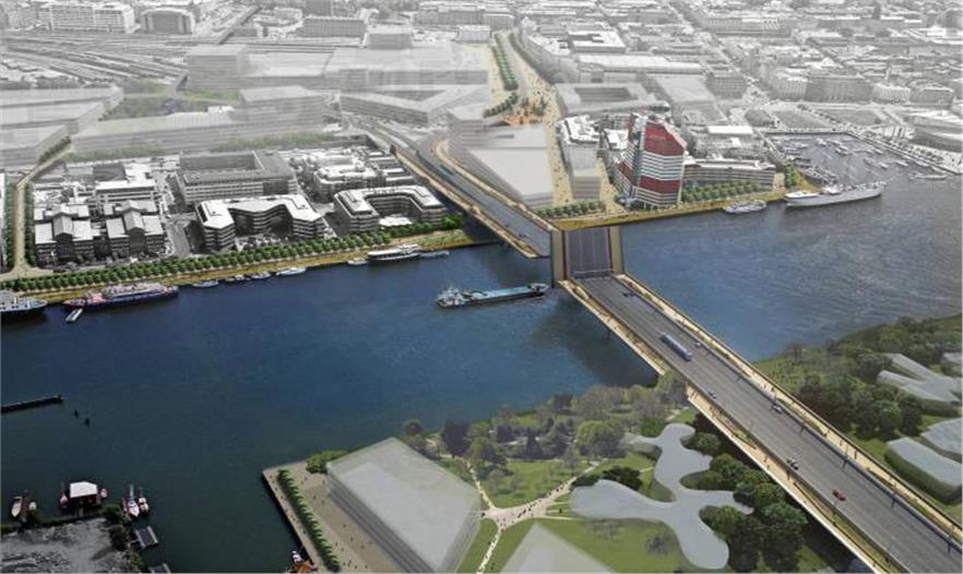 這個(gè)項(xiàng)目的目標(biāo)是設(shè)計(jì)一個(gè)新橋,取代現(xiàn)有的一座橋,用于汽車、公交車、電車、行人和自行車通道,還帶有一個(gè)30米寬的航行開口,設(shè)計(jì)盡量精致、簡(jiǎn)潔。由于這座橋的簡(jiǎn)單設(shè)計(jì)和普通的輪廓,使它的結(jié)構(gòu)和線條得到了突出。這座橋與周圍極具表現(xiàn)力的環(huán)境形成了鮮明的對(duì)比。