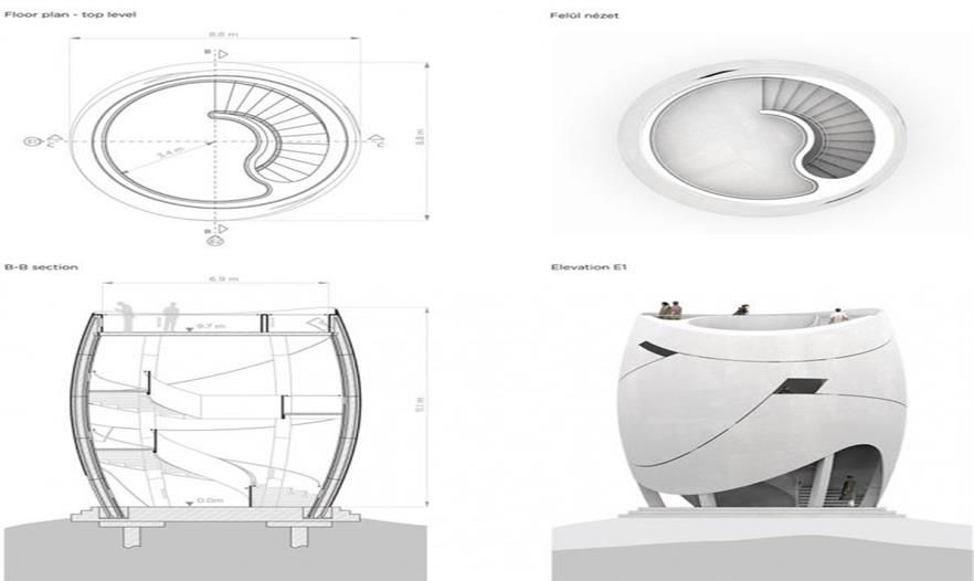 布達佩斯附近本斯山頂部要建一座地標型觀景臺,因而組織了一場建筑理念競賽,以收集最好的觀景臺設計方案。我們的設計利用了本地區(qū)因水流和風力侵蝕形成的獨特花崗巖結構。這些結構是一些搖石,本地居民和游客常常在這里聚集、休憩。我們的設計具有象征意義,從視覺外觀上看讓人聯(lián)想起本斯山周圍的搖石產地,因而在新建筑與環(huán)境之間維持了和諧。景觀設計和我們的觀景臺設計提案只會對建筑場地周邊地區(qū)產生影響,而自然環(huán)境的氛圍則非常原汁原味地被保存了下來。連接遠足小道,無論從象征意義上說還是就內容而言,都使這一地區(qū)豐富的旅游價值得到進一步開發(fā)。毗鄰的帕科茲德-蘇科羅-本斯山小徑將是很好的游覽去處。