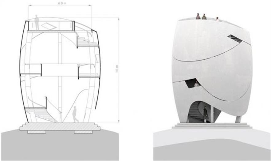 我們草擬了創(chuàng)新型解決方案,包括物流運輸、建筑科技和材料選用上多項最前沿的發(fā)明。建造時采用可運輸的預制元素,主要是預澆鑄混凝土,建造支柱和曲形混凝土外殼。