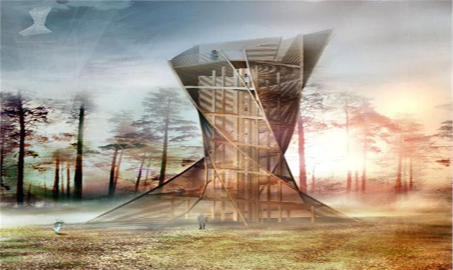 方案的位置是附近的森林,而且建筑師想讓觀景臺(tái)90%的結(jié)構(gòu)使用木頭建造,與周圍的自然環(huán)境相映襯。