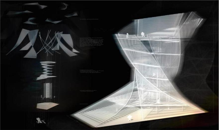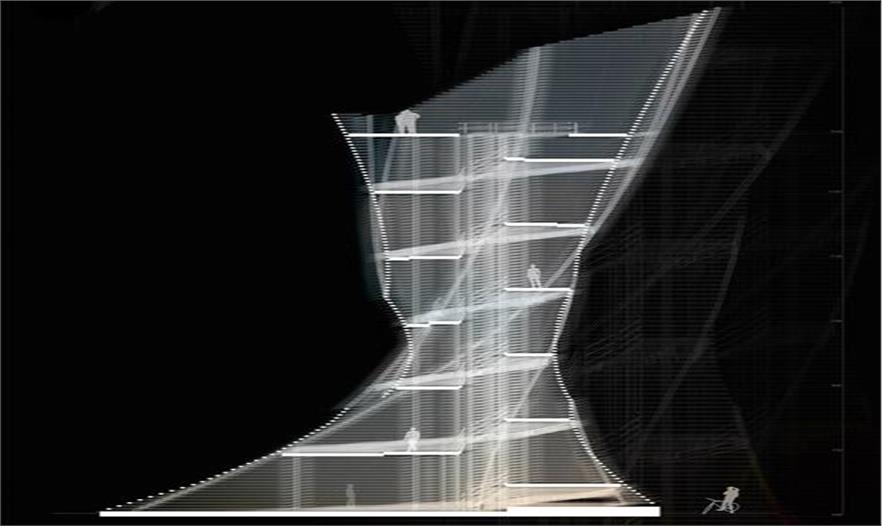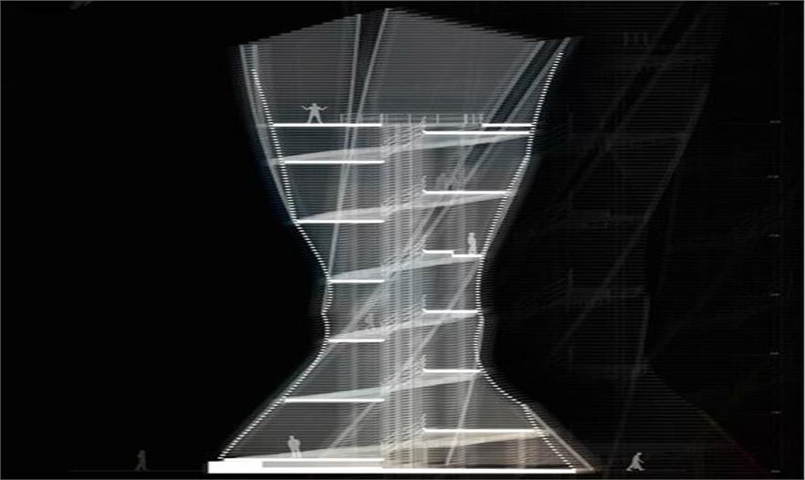 這個(gè)結(jié)構(gòu)的螺旋結(jié)構(gòu)看起來(lái)像從底部延伸出來(lái)的一棵樹,頂部像樹冠一樣(這是隨著觀景臺(tái)的逐漸上升旋轉(zhuǎn)形成的六邊形造成的)。