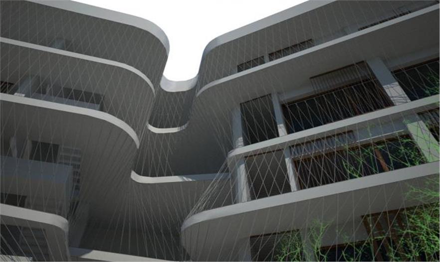 整個建筑被網格罩住,作為保護結構,也是植物生長的支撐物,所以該建筑塑造了自己的環(huán)境。