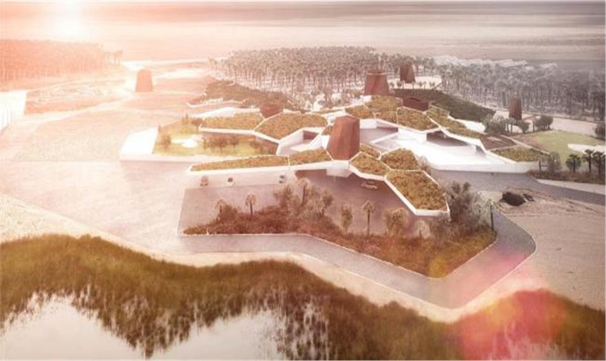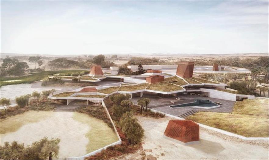 這個農(nóng)場被認(rèn)為是對沙漠住宅的整體規(guī)劃。該區(qū)域有6萬平方米的空地,傳統(tǒng)的農(nóng)場是儲存棗椰產(chǎn)品。在研究了這個區(qū)域之后,這里的大風(fēng)和氣候最突出。該事務(wù)所決定的第一個景觀設(shè)計策略是防沙固塵,在干燥的熱風(fēng)下增加濕度,所以這些房屋會建造在安全和舒適的小氣候里。