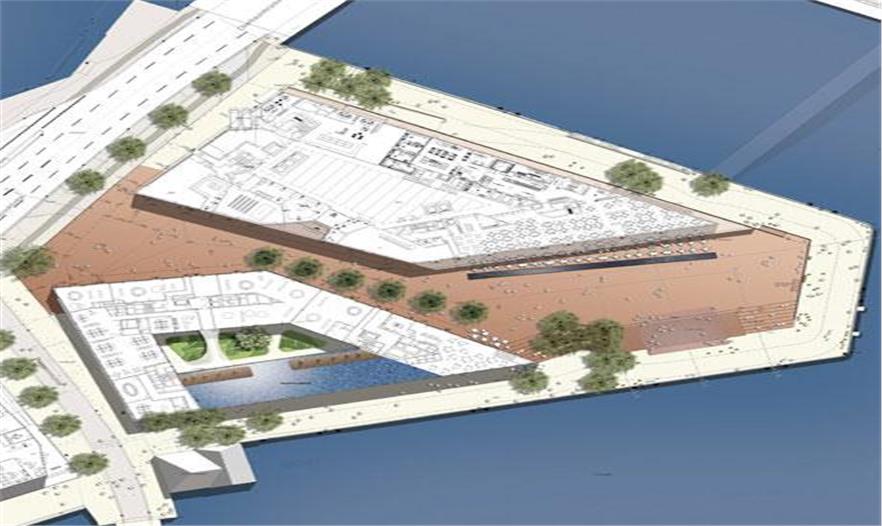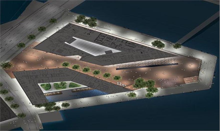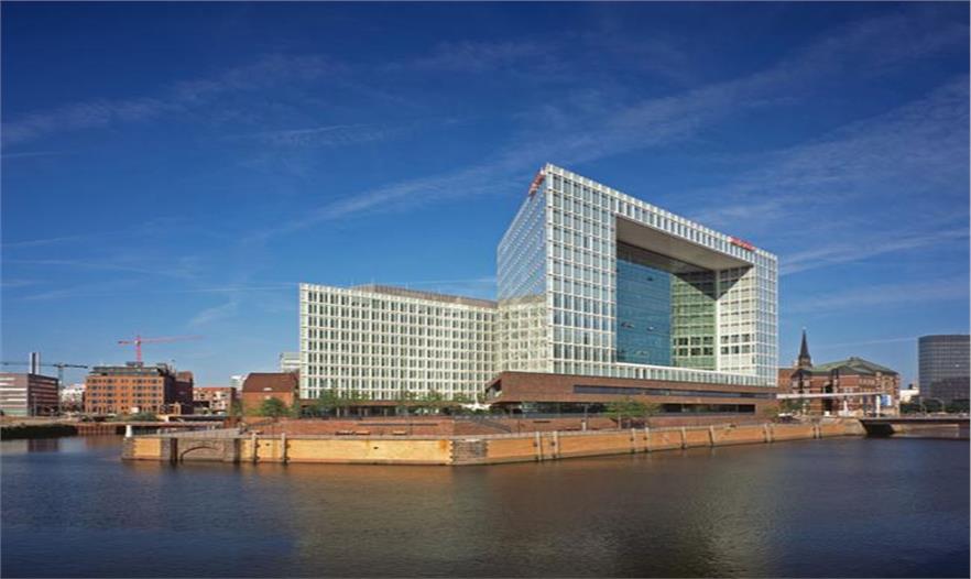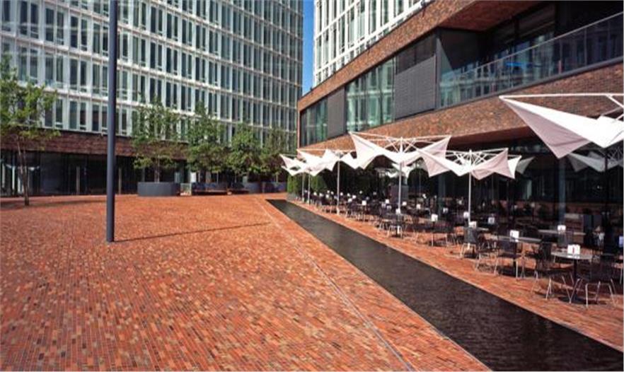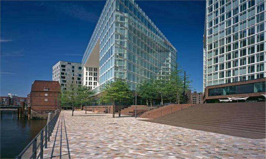 《明鏡周刊》的新建筑和Ericus Kontor建筑面向水和一個南向的廣場而建。一個突出的主題是平滑的水面,與地表齊平,映射出燈光、天空、人、樹和外形結構,與此同時從現(xiàn)有的開放空間里分離出餐飲區(qū)。