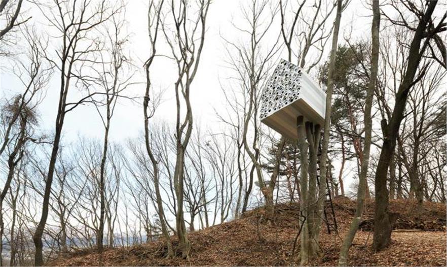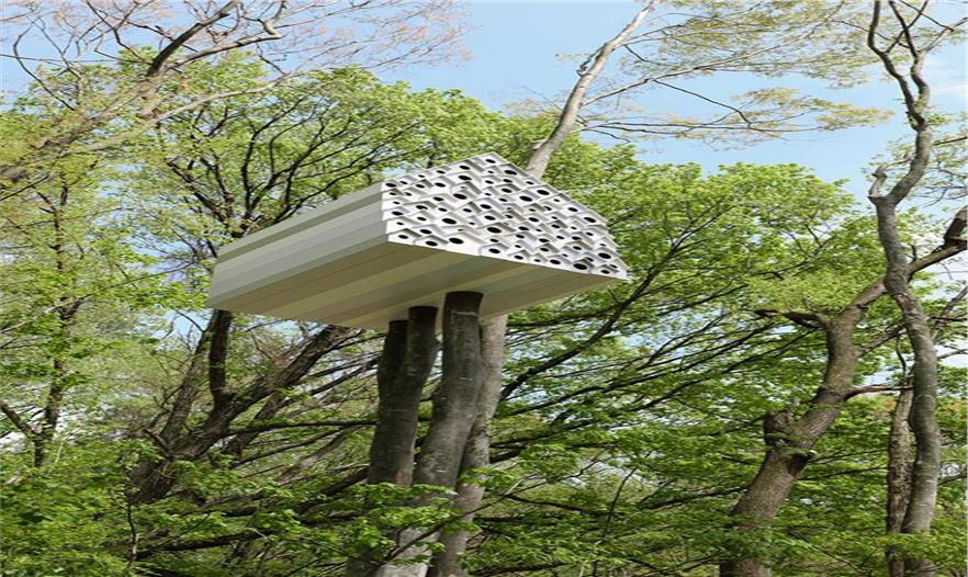 一方面,樹屋為鳥類設(shè)置了78個(gè)巢穴入口。另一方面,還設(shè)有一個(gè)人類的入口,使人能從樹屋里面觀察到鳥類的巢穴活動(dòng)。