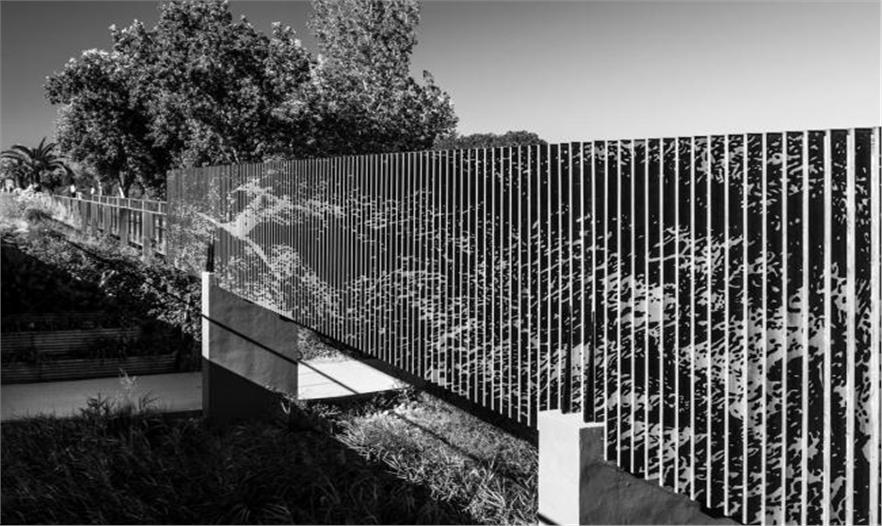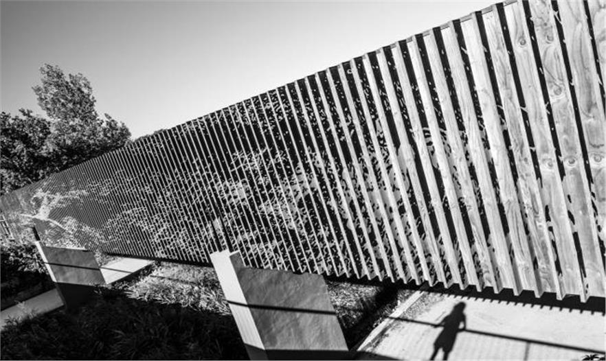 這個25×2.5米的木質(zhì)結(jié)構(gòu)墻把街道和景觀劃分開。一個是休息場所,欣賞安寧的落日景色,而另一個有城市特色,沿著道路平行延伸,第二個空間是為了從里面快速觀賞過往的車輛而建。