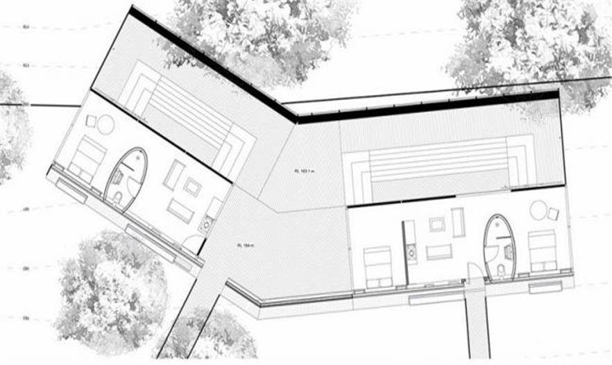 設(shè)計(jì)包括五個(gè)小屋,每個(gè)小屋一到兩間臥室,這些小屋輕巧的坐落在山坡上,為住戶提供小屋周邊綿延數(shù)英里的景色。為了保證盡可能減少地面的打斷,小屋的設(shè)計(jì)和位置都經(jīng)過精心考量。每個(gè)空間在不影響客人看風(fēng)景的情況下都經(jīng)過調(diào)整以獲得最大的私密性。在室內(nèi),舒適的家具布置不但給游客以離網(wǎng)生活體驗(yàn),還讓其功能性與品質(zhì)一直維持在較高的水平上。