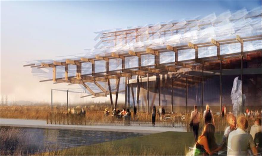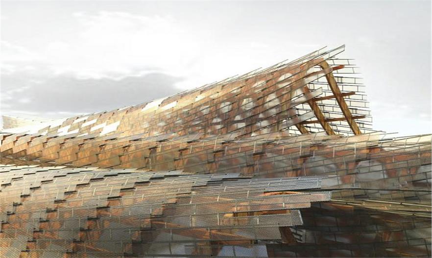 效果圖除了藍天就是咱們的場館了,實際上周圍都是館,旁邊的烏拉圭館,哥倫比亞館,完全把咱們的形體淹沒了。