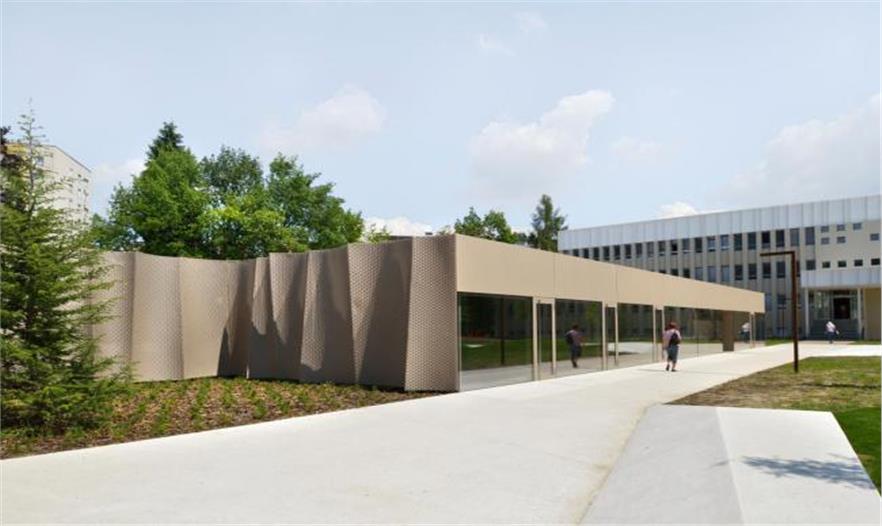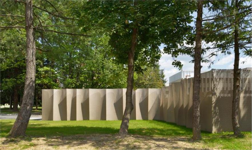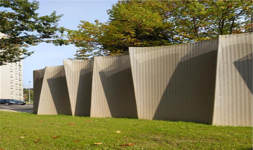 這個(gè)停車場(chǎng)剩余的周邊被一個(gè)擴(kuò)展性的金屬表面覆蓋,是更加休閑的設(shè)計(jì)方式。它的高度與建筑立面前面的公共規(guī)劃相匹配,而且它也足夠高來(lái)掩蓋上層高度上的汽車。個(gè)體立面板以拋物線的形式設(shè)置在建筑平面上。