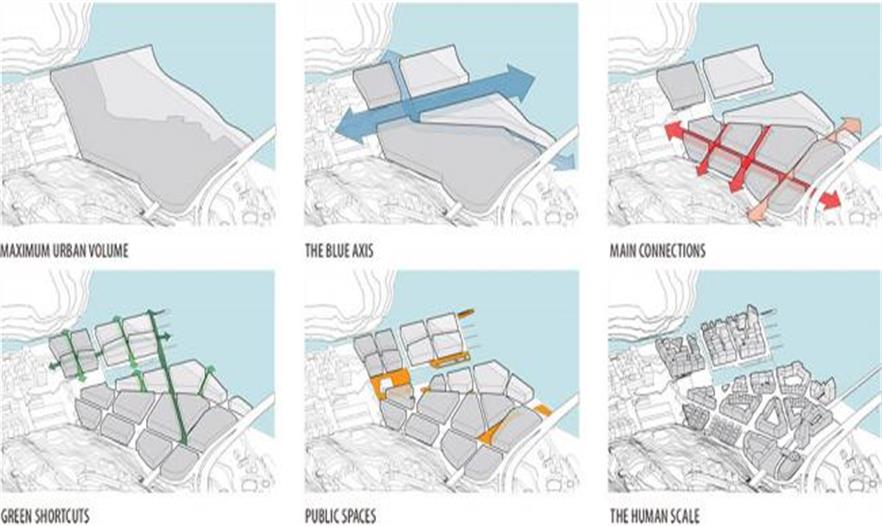 在整個(gè)濱水景觀設(shè)計(jì)方案中,三個(gè)不同的區(qū)域相互結(jié)合,創(chuàng)造了多變的城市空間,以及多樣化的建筑單元和形式。整個(gè)規(guī)劃區(qū)域通過一個(gè)完整的自行車交通系統(tǒng)緊密結(jié)合起來,提供了清晰且通暢的自行車道規(guī)劃,充足的自行車停車空間,使自行車出行成為最簡單和有效的交通方式。同時(shí),規(guī)劃為該區(qū)域創(chuàng)造了靈活多變的開發(fā)區(qū)域,使各個(gè)區(qū)域根據(jù)城市密度的具體需求而變化,同時(shí)保留了貫通整個(gè)海港區(qū)的豐富的城市街道生活空間。