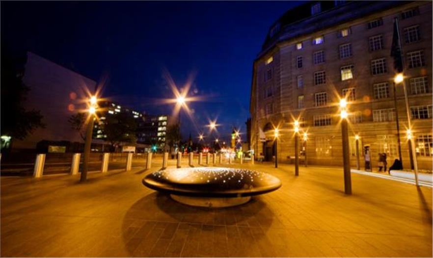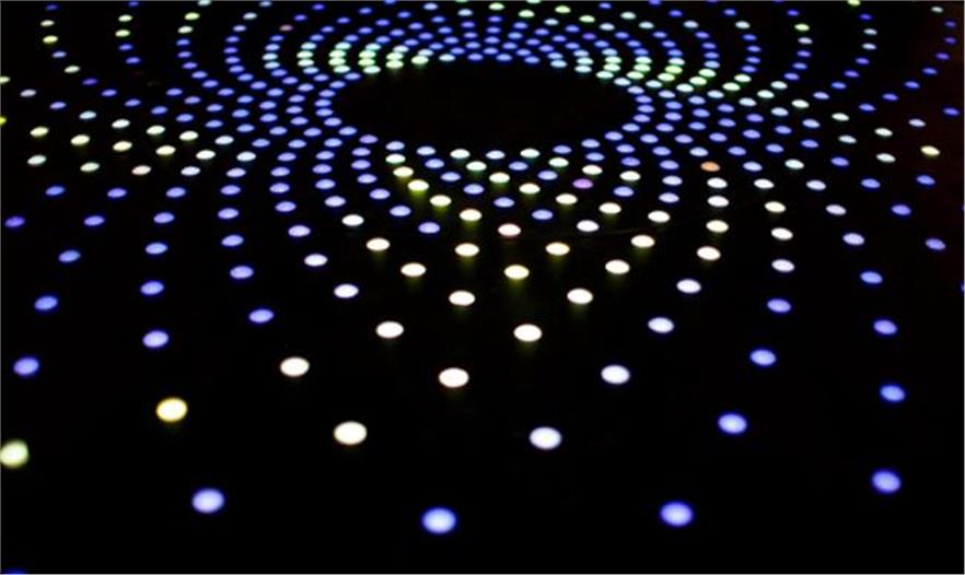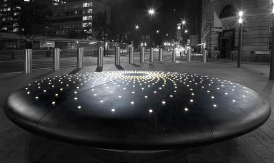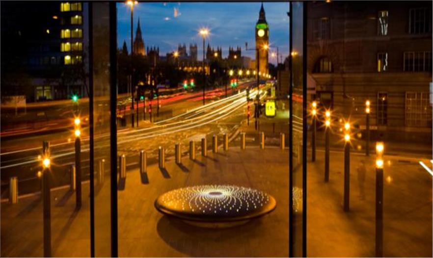 賈森•布魯日事務(wù)所(Jason Bruges Studio)是從橋上的體驗(yàn)經(jīng)歷和與泰晤士河的接近中獲得的靈感,建造出一件藝術(shù)品,反映出泰晤士河壯觀的景色。這個(gè)裝置藝術(shù)的表面依照泰晤士河的表面進(jìn)行設(shè)計(jì),會隨著風(fēng)速和風(fēng)向的變化而變化。公園廣場酒店屋頂上的風(fēng)力感測器即時(shí)的勘測風(fēng)速和風(fēng)向。這個(gè)數(shù)據(jù)促使這個(gè)雕塑表面上燈形不斷地發(fā)生變化。